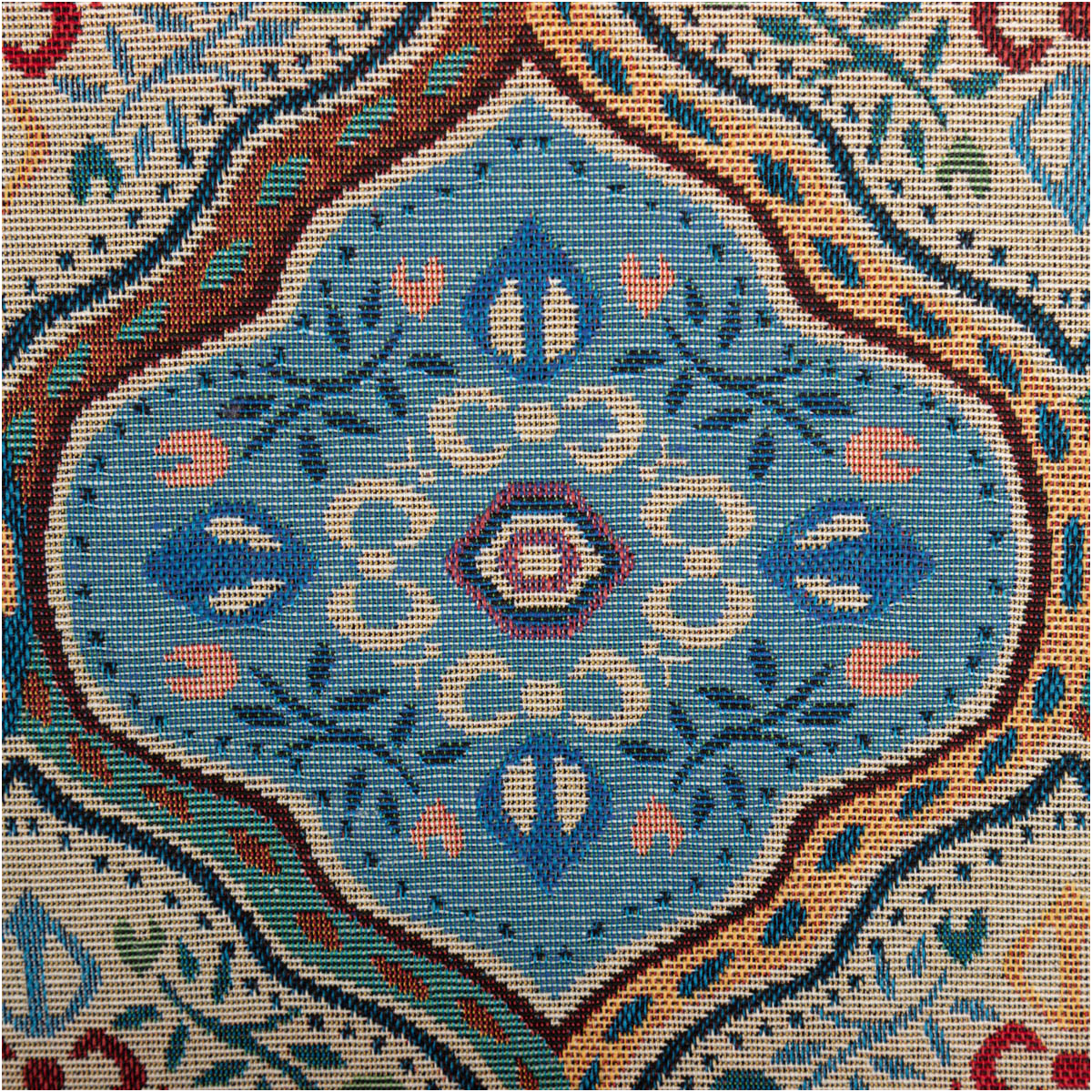 Robuster Gobelin Stoff mit großem Ornamentmuster in Blau und bunten Akzentfarben für dekorative Wohnideen
