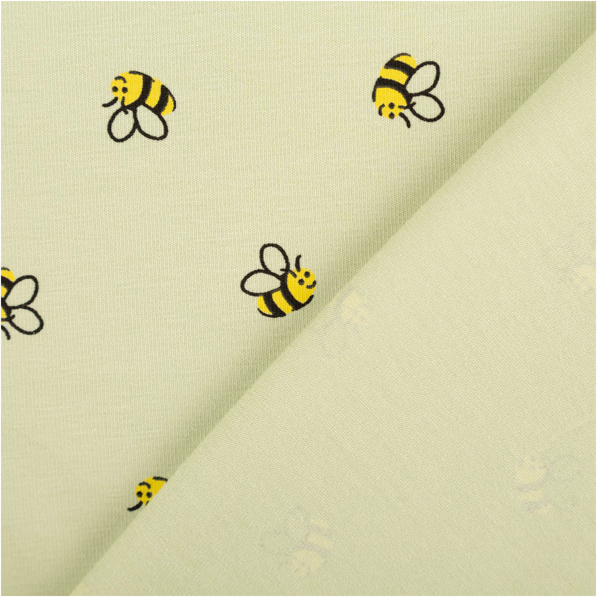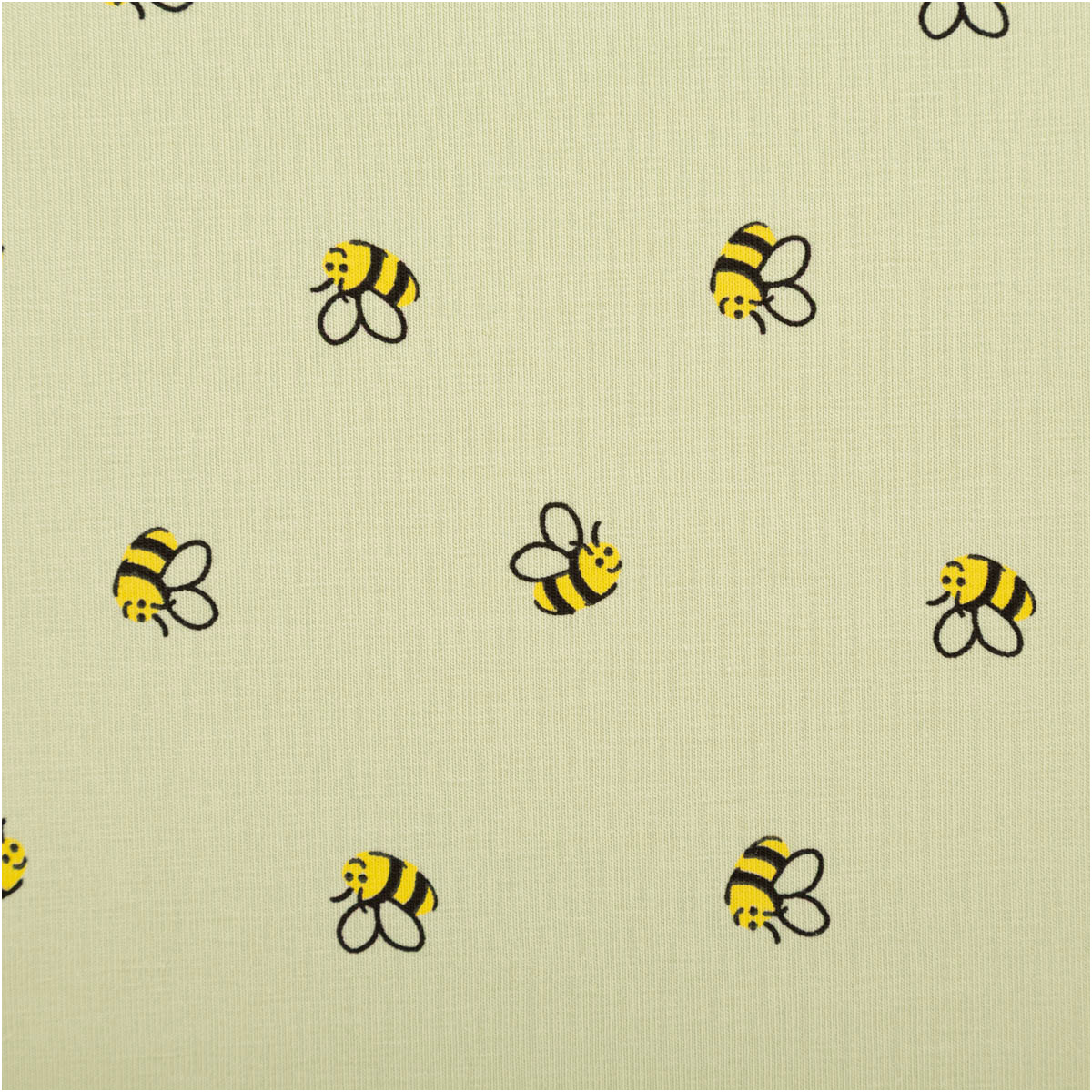 Süßes Bienenmuster: kleine gelb-schwarze Bienen auf zartgrünem Grund – ruhig, modern und perfekt kombinierbar.