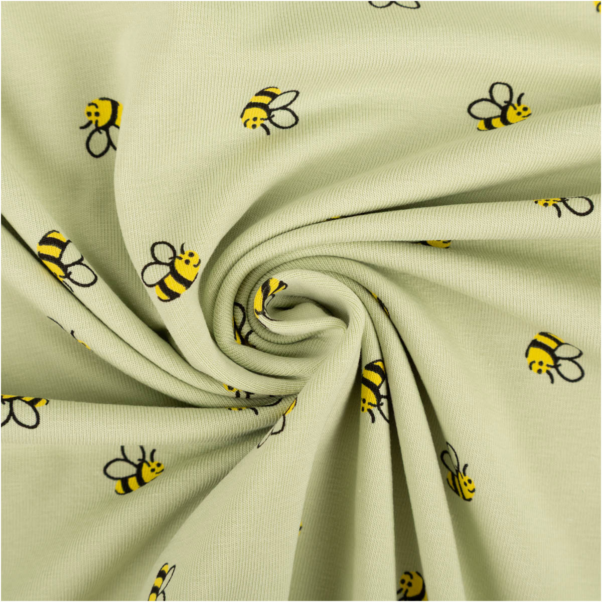 Baumwolljersey Bienen grün/gelb: natürlich, ruhig und einfach süß