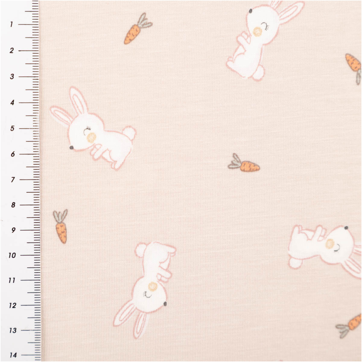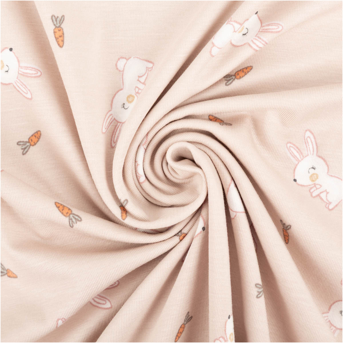 Baumwolljersey Kaninchen & Möhren in Beige-Weiß: zuckersüß und alltagstauglich