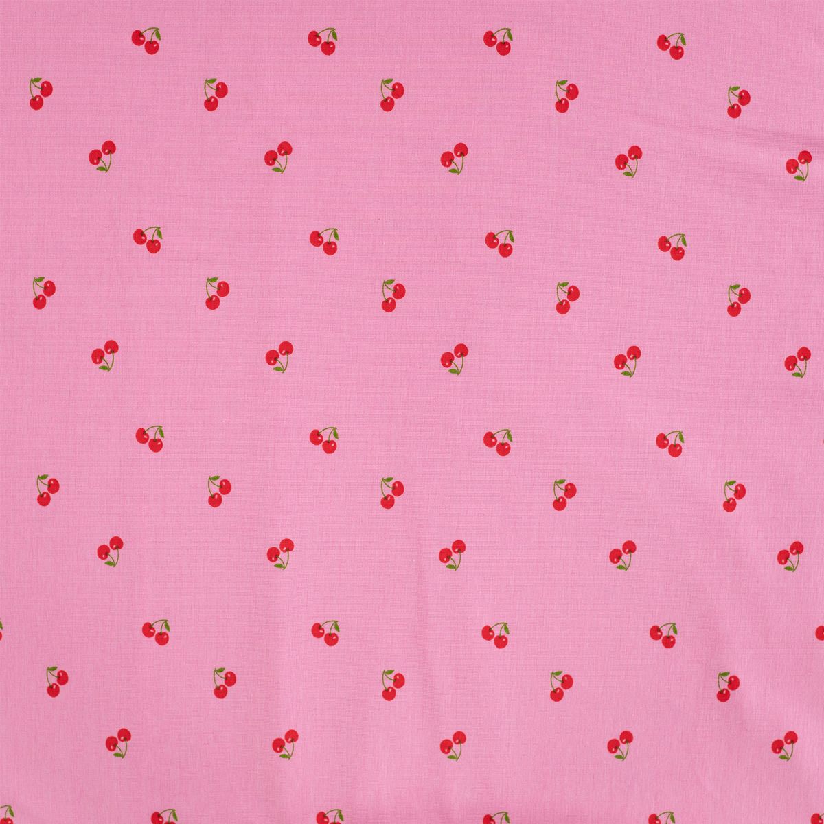 Jersey Stoff Baumwolljersey Kirschen rosa rot 1,45m Breite