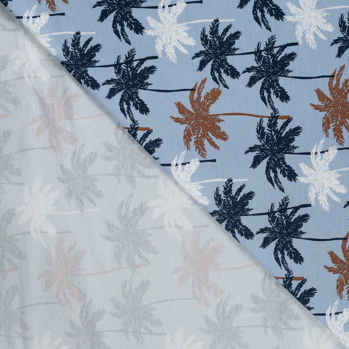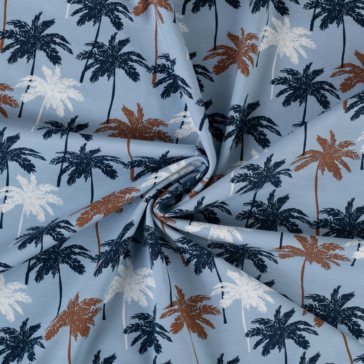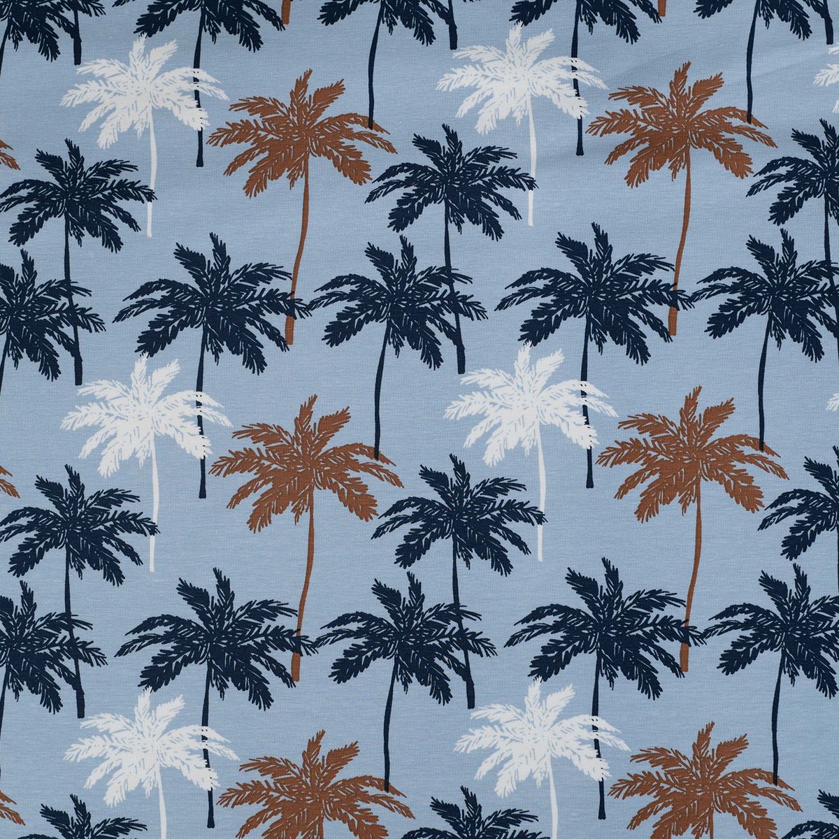 Baumwolljersey Palmen blau – Jersey Meterware in 1,45 m Breite