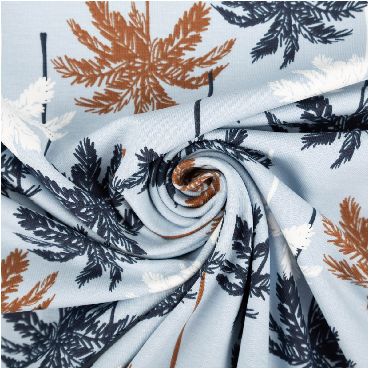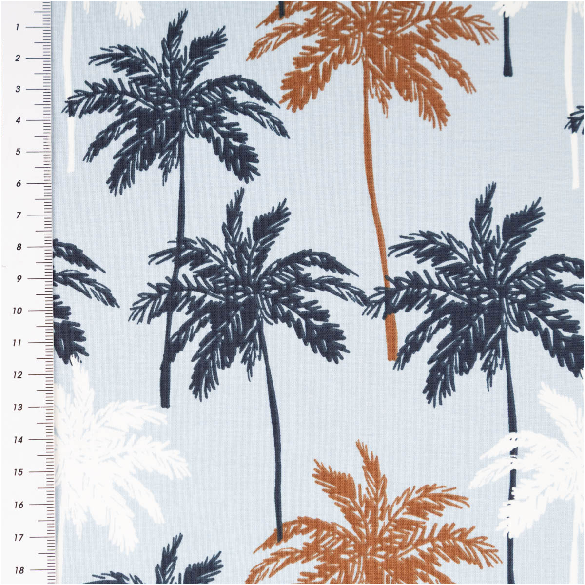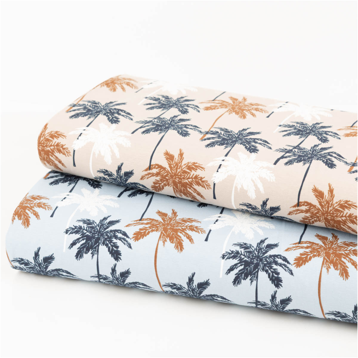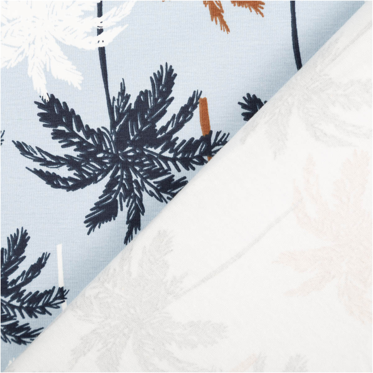 Baumwolljersey Palmen blau – Jersey Meterware in 1,45 m Breite