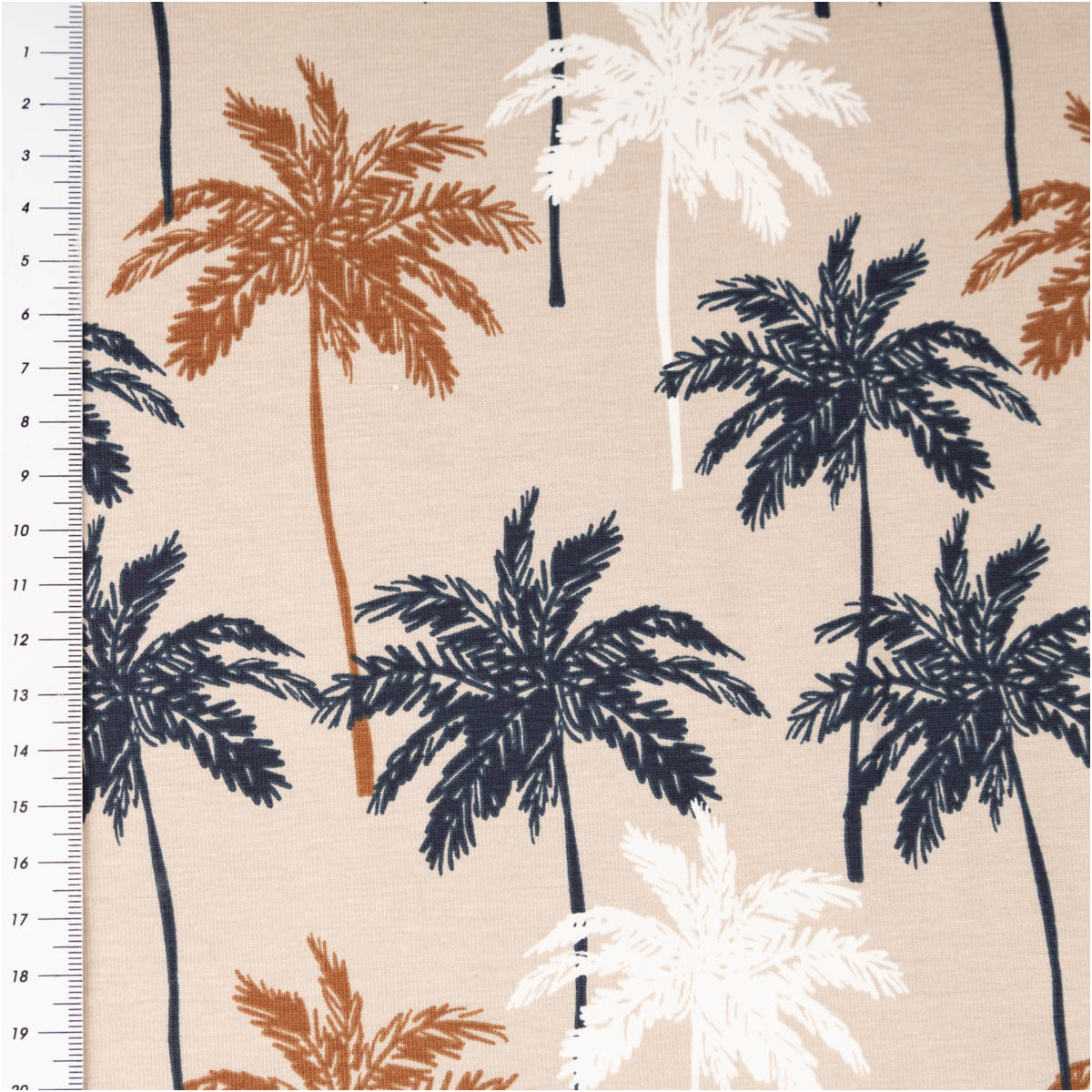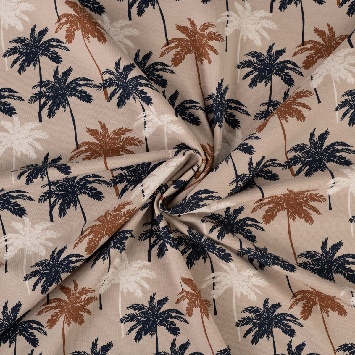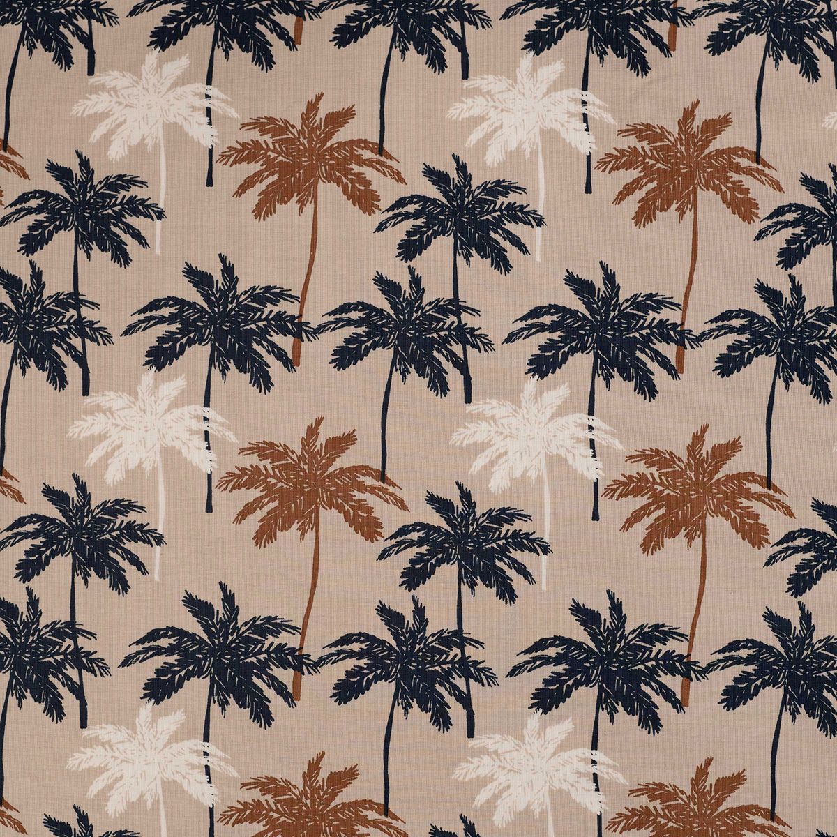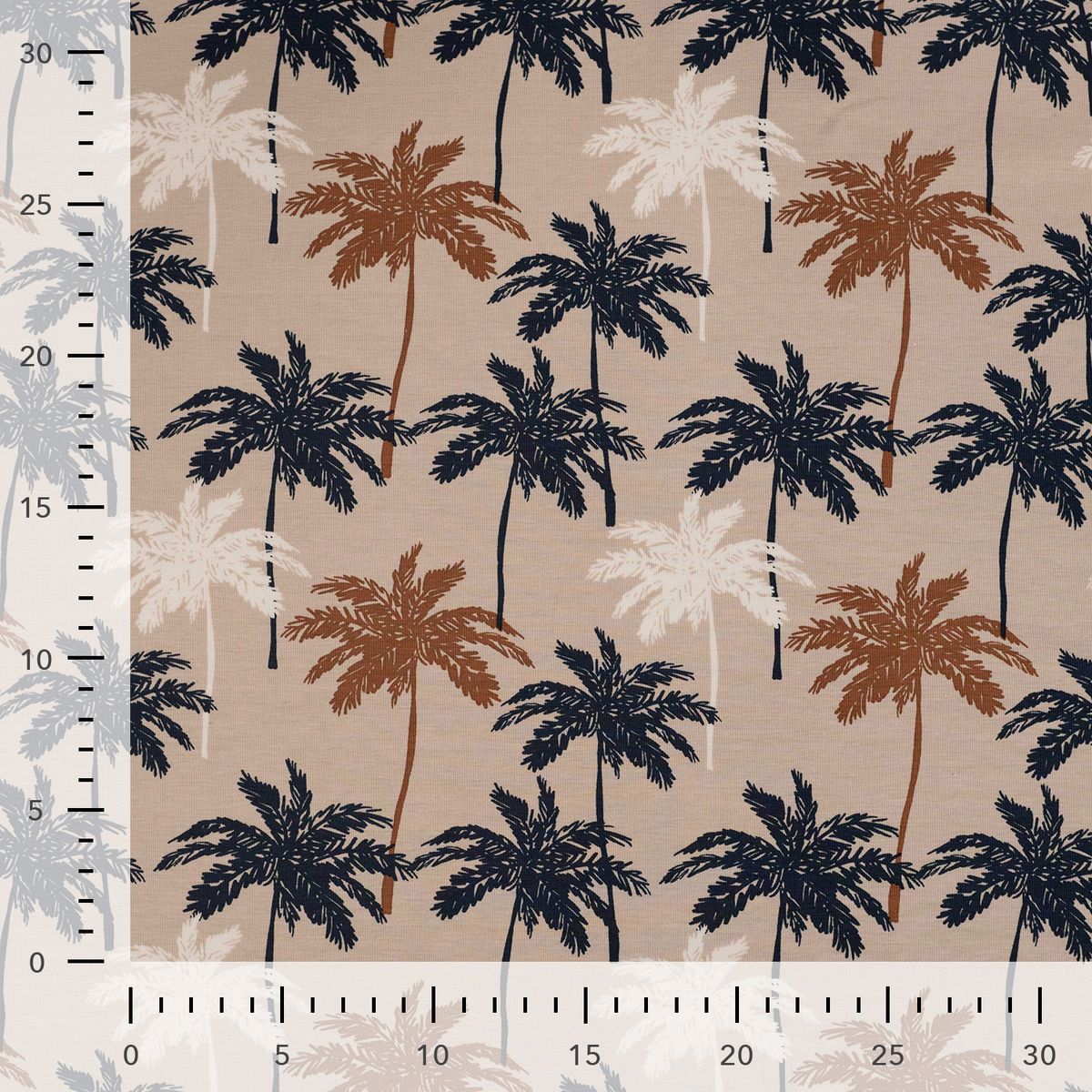 Jersey Stoff Baumwolljersey Palmen sand 1,45m Breite