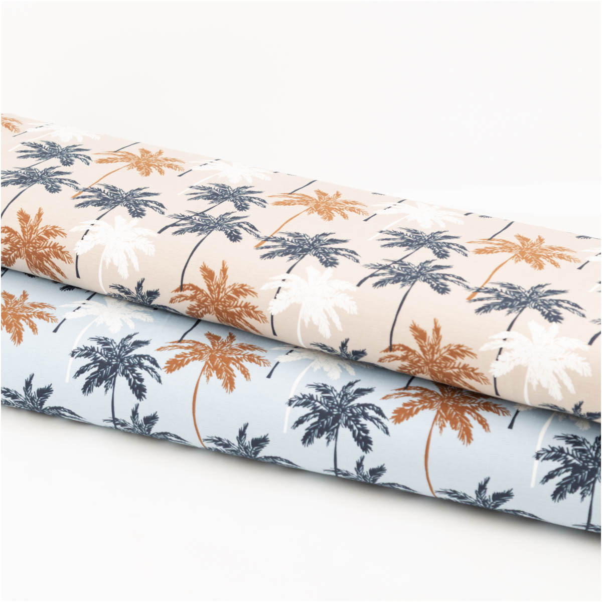 Mit dem sandfarbenen Palmenprint nähst du zeitlose Lieblingsstücke für jede Saison: