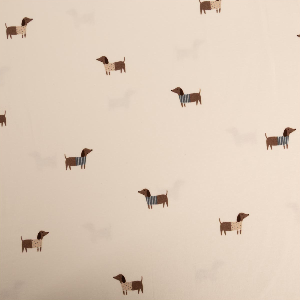 Dieser Baumwolljersey mit Dackelmotiv ist der perfekte Stoff für all deine Lieblingsnähprojekte!