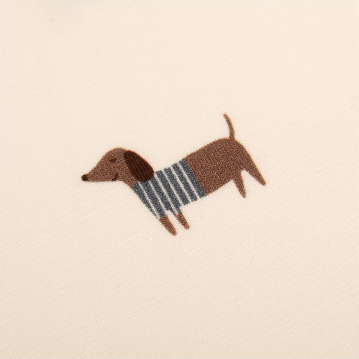 Design: Dackel-Motiv auf wollweißem Hintergrund, braune & blaue Akzente