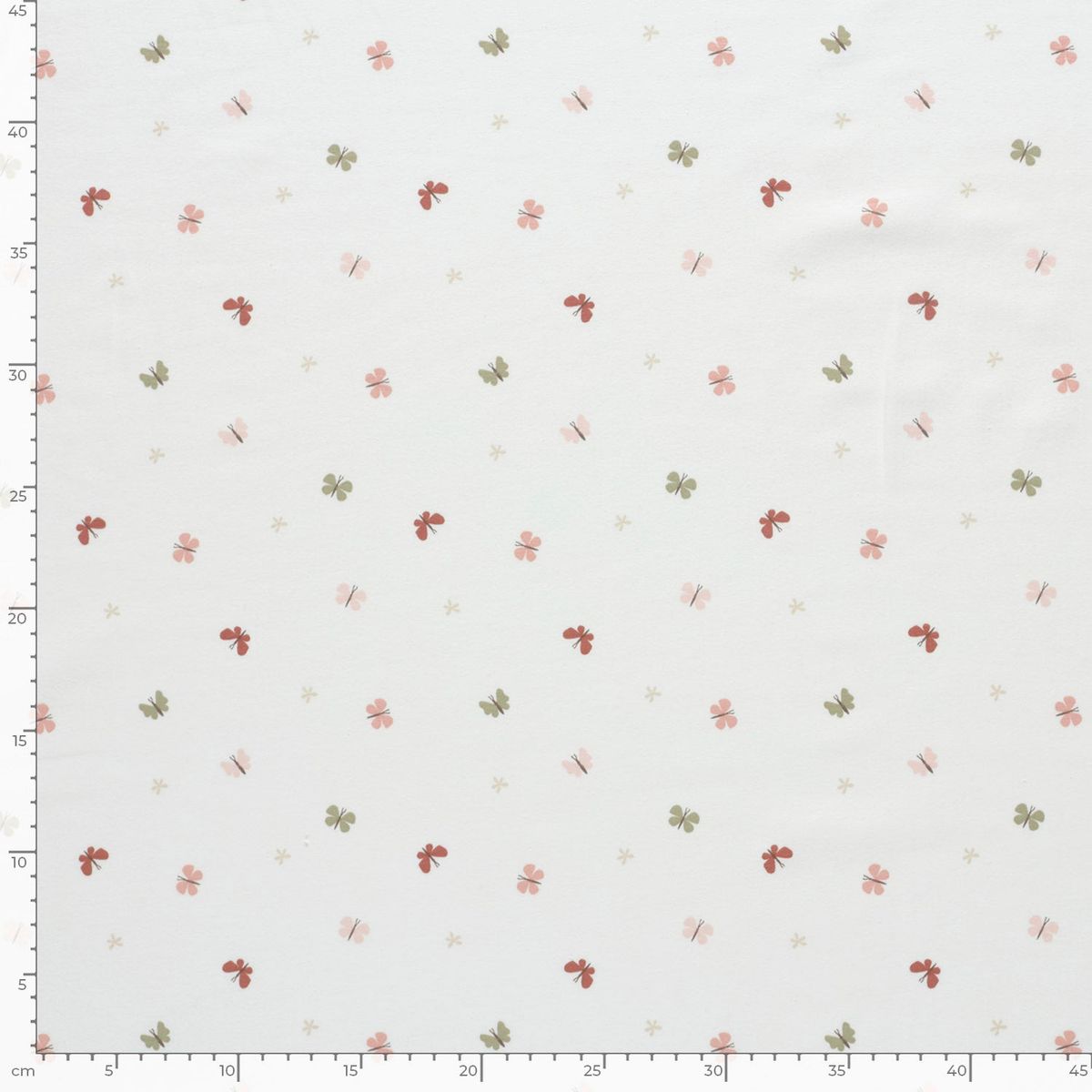 Du möchtest Kleidung nähen, die Leichtigkeit und Frische ausstrahlt? Dieser hochwertige Baumwolljersey mit zarten Schmetterlingen in Rosa, Rot und Beige auf wollweißem Grund ist die perfekte Wahl. Das dezente und dennoch detailreiche Muster verleiht deinen Kreationen eine verspielte Note, die sowohl bei Kindern als auch bei Erwachsenen hervorragend ankommt.