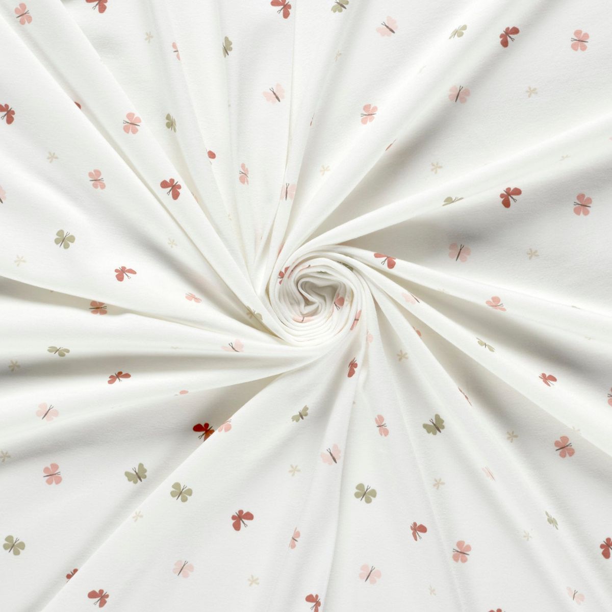 Jersey Stoff Baumwolljersey Schmetterlinge wollweiß rosa rot beige 1,50m Breite