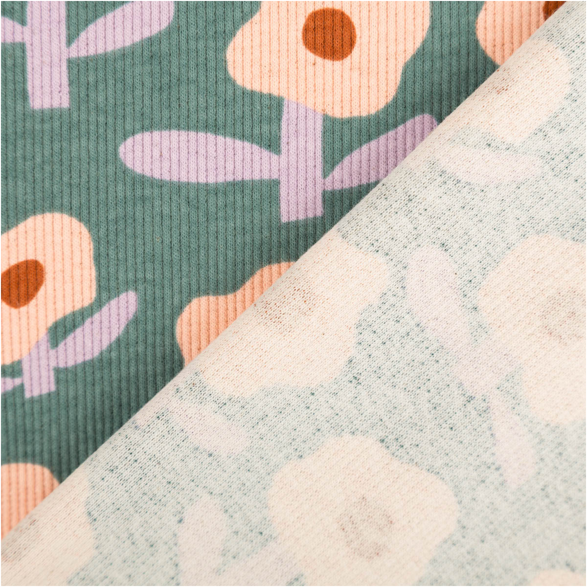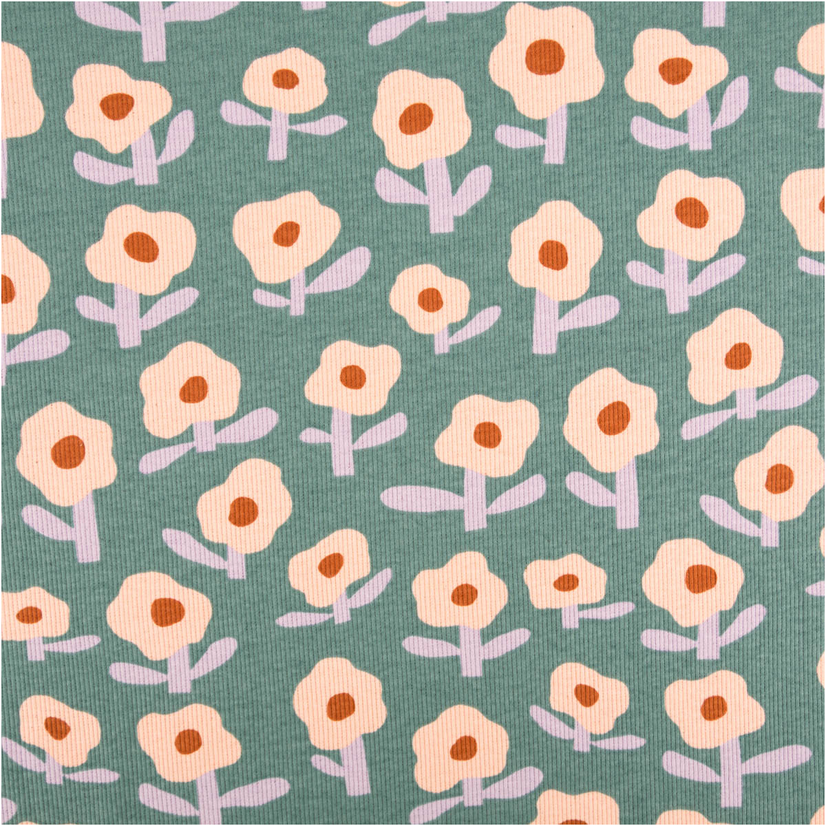 Bio Rippjersey Rib Jersey Stoff Baumwolle Blumen Jennifer Bouron grün rosa 1,2m Breite