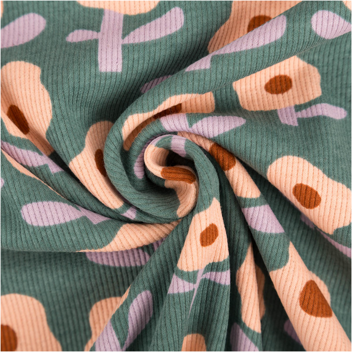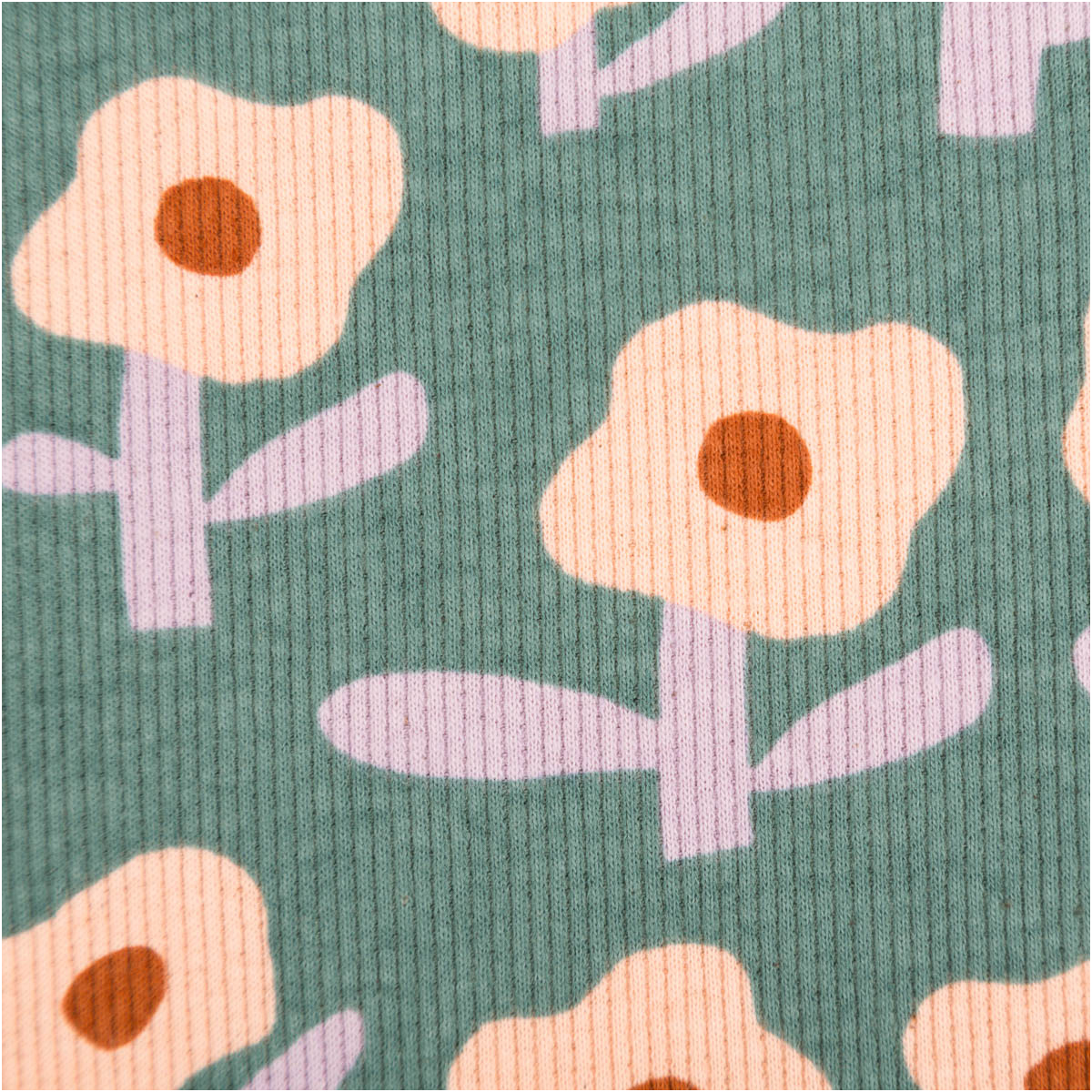 Bio Rippjersey Blumen in Grün und Rosa für bequeme Lieblingsstücke