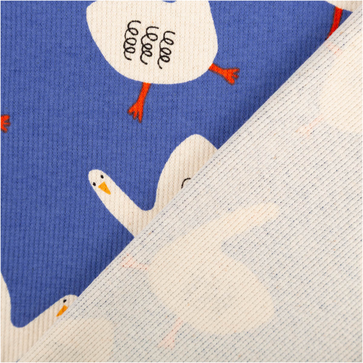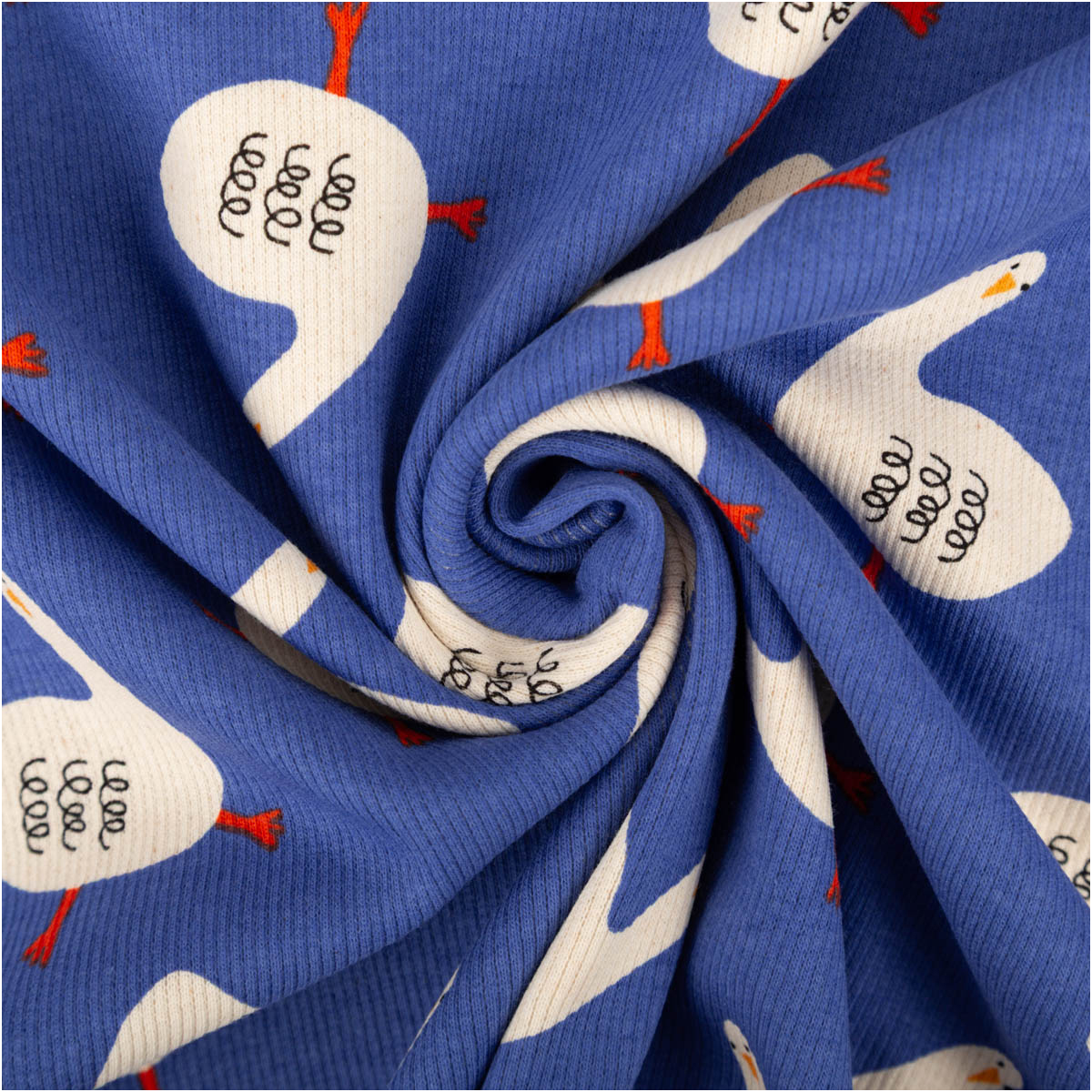 Bio Rippjersey Stoff Baumwolle Gänse Jennifer Bouron blau ecru 1,20 m Breite