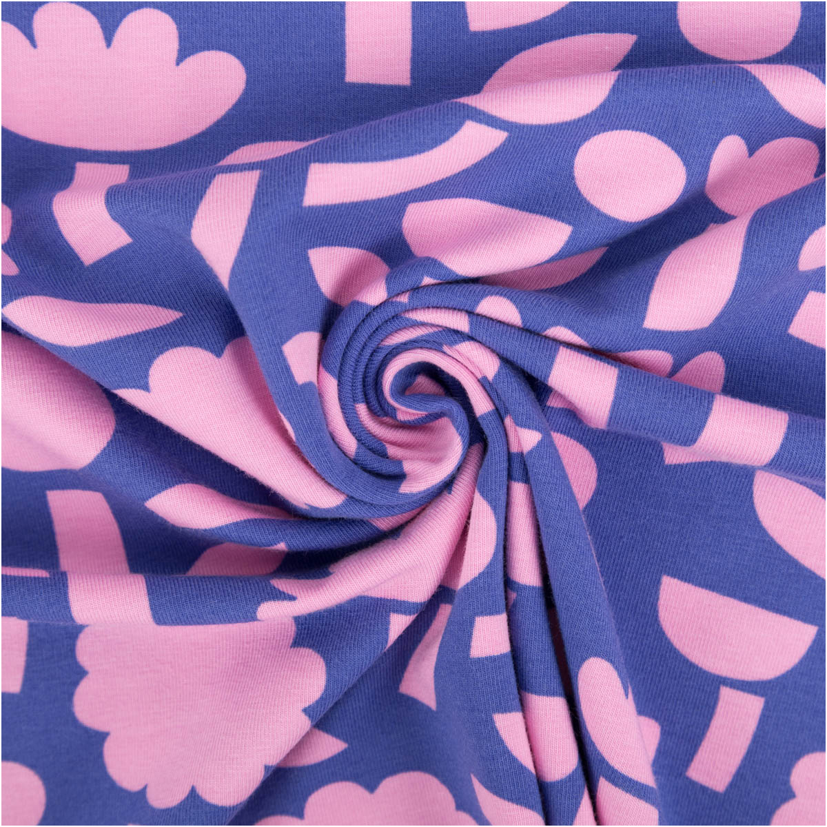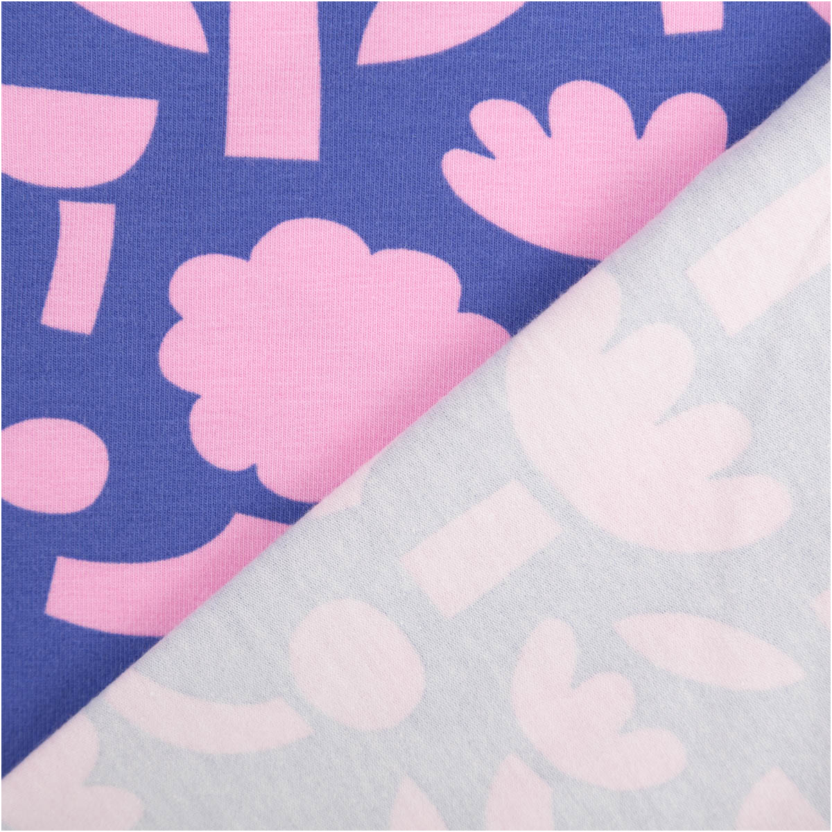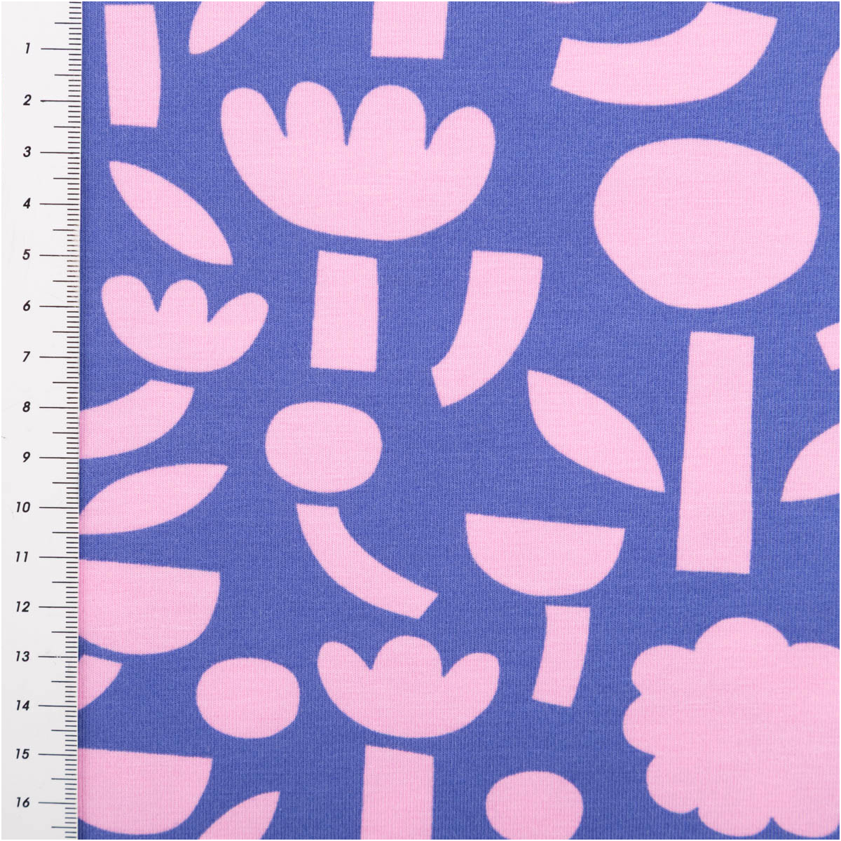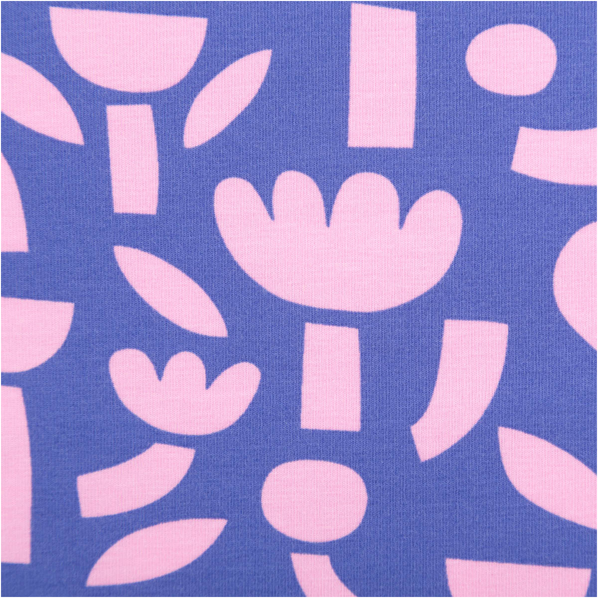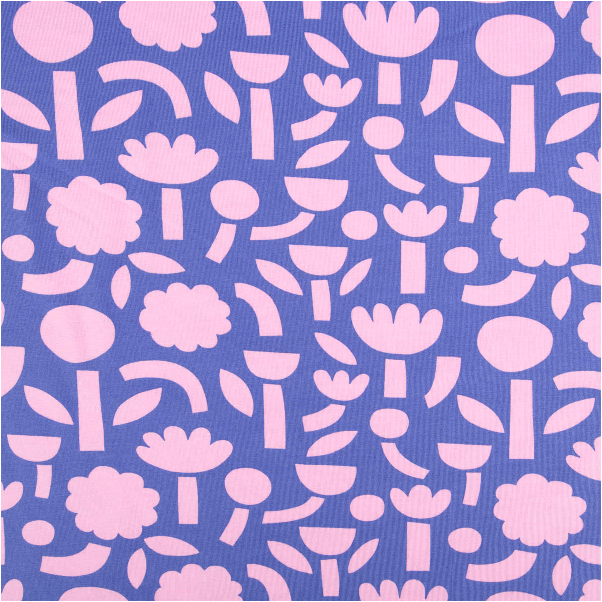 Bio Jersey Stoff Baumwolljersey Blumen Jennifer Bouron blau rosa 1,48 m Breite