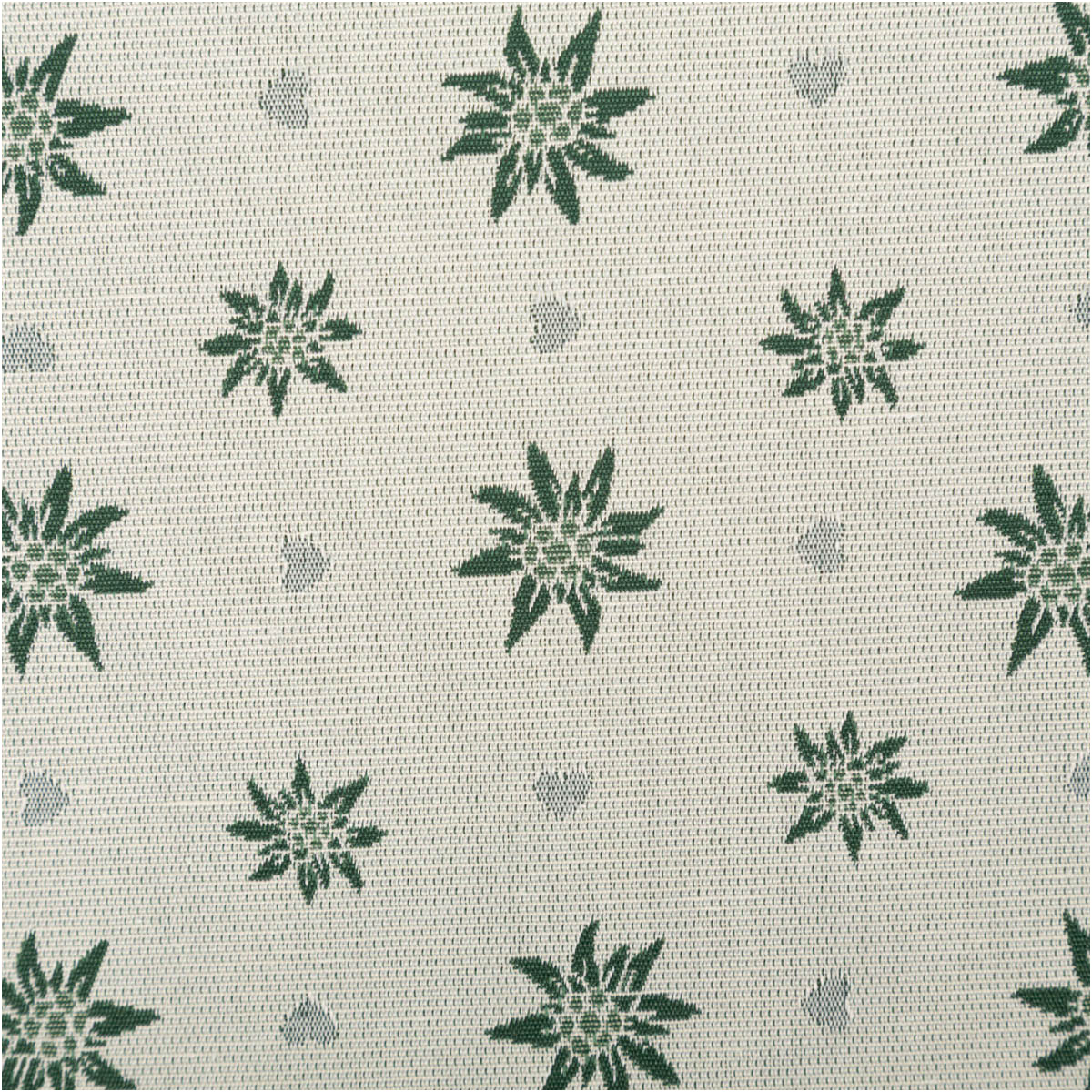 Doubleface Jacquard: beidseitig verwendbar, vorn grüne Edelweißblüten auf Ecru, hinten helle Blüten auf Grün