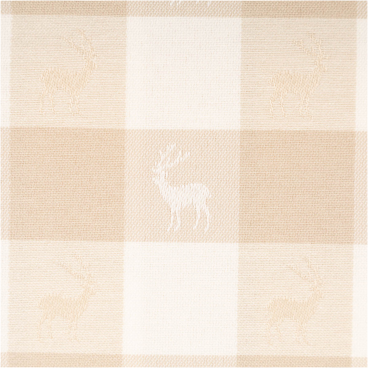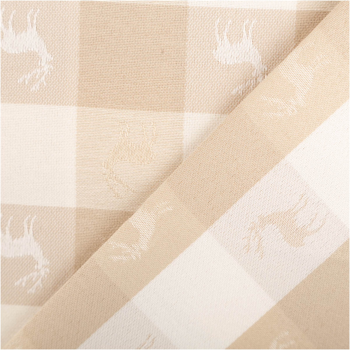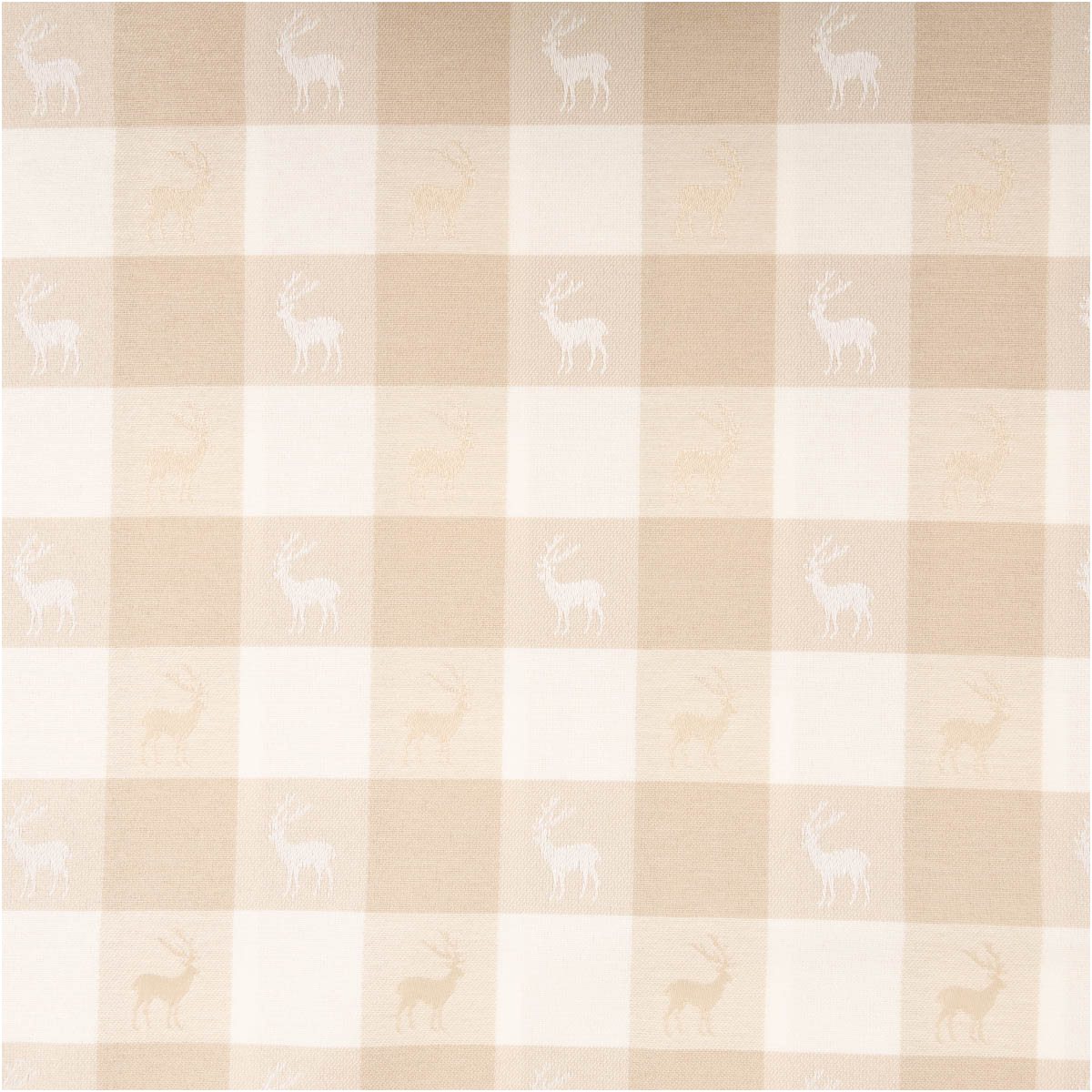 Das klassische Karo in Beige-Weiß mit den kleinen Hirschmotiven verleiht dem Stoff seinen unverwechselbaren Charakter. Er passt wunderbar zu Holz, Naturmaterialien, hellen Möbeln, rustikalen Einrichtungen und saisonaler Dekoration.