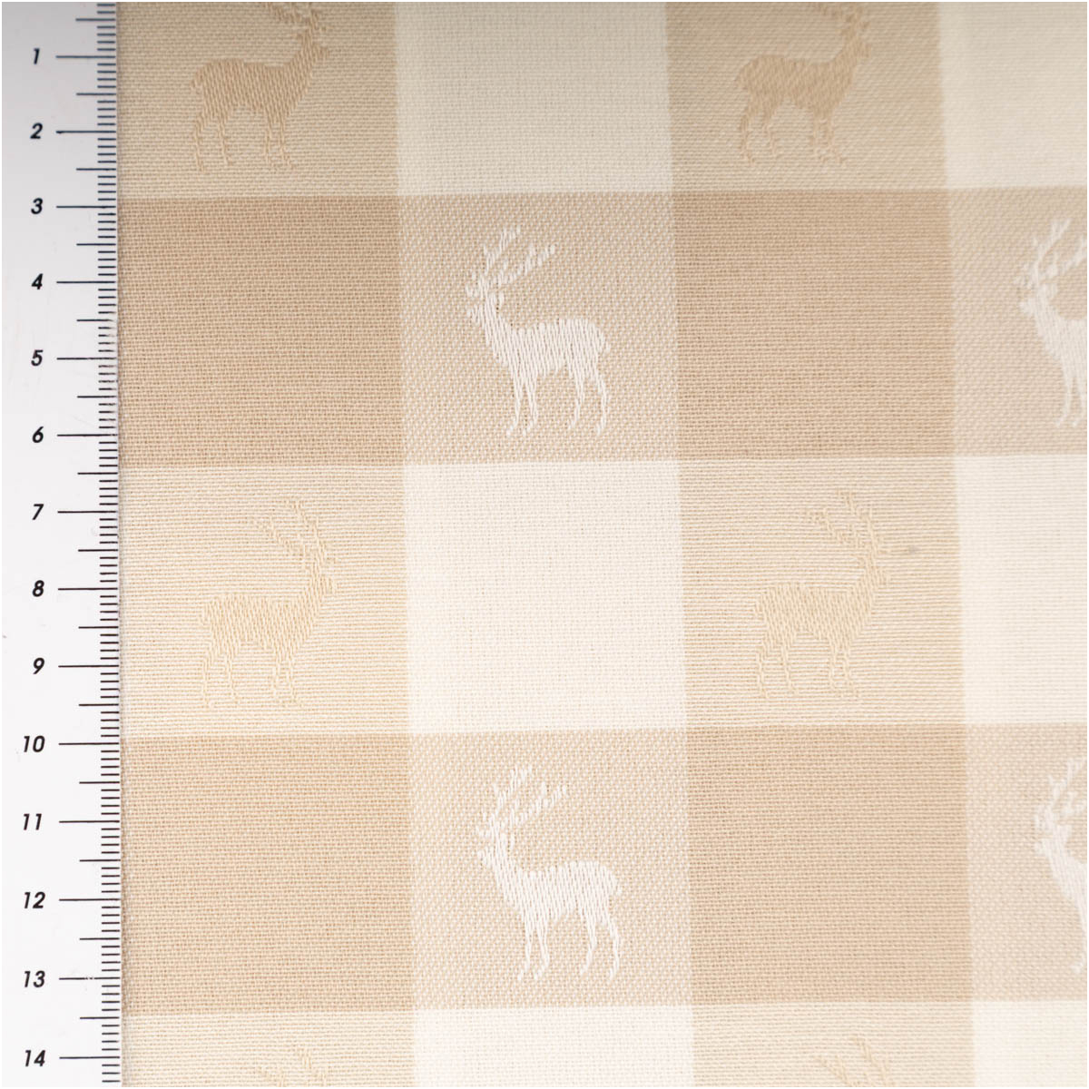 Jacquard Stoff Dekostoff Karos Hirsche beige weiß 140cm Breite