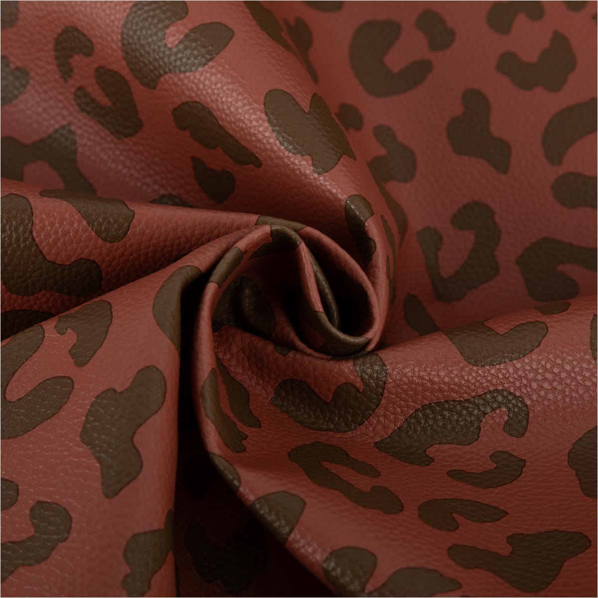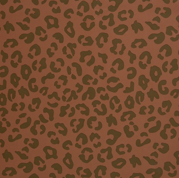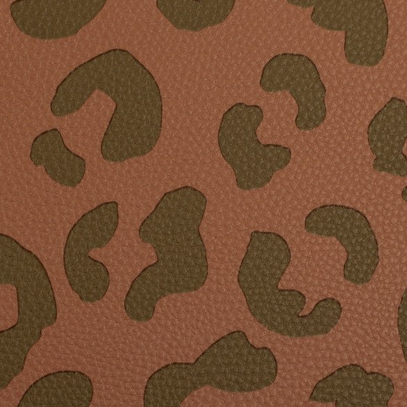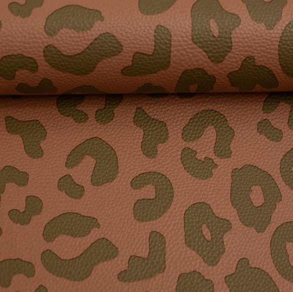 Hochwertiges Kunstleder mit Happy-Leo-Print in Braun/Oliv von Cherry Picking Studios in Kooperation mit Swafing