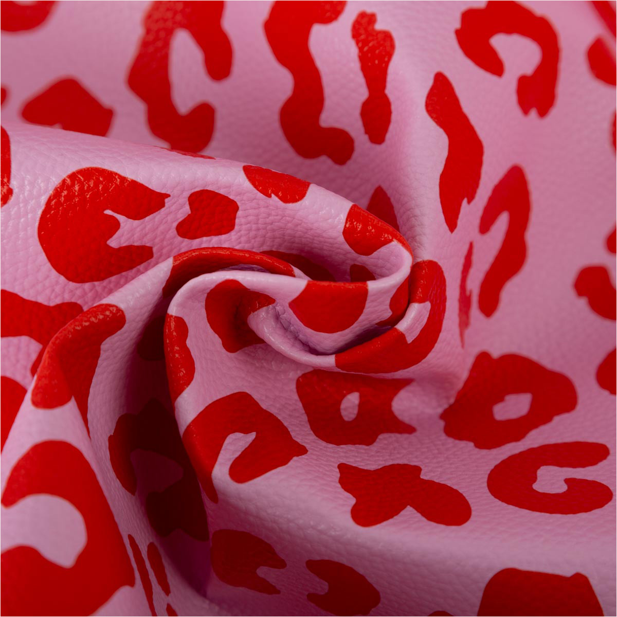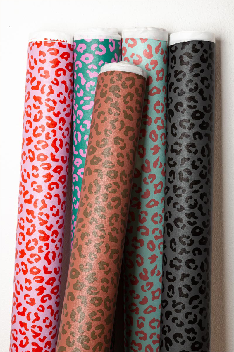 Hochwertiges Kunstleder mit Happy-Leo-Print in Rosa/Rot von Cherry Picking Studios in Kooperation mit Swafing