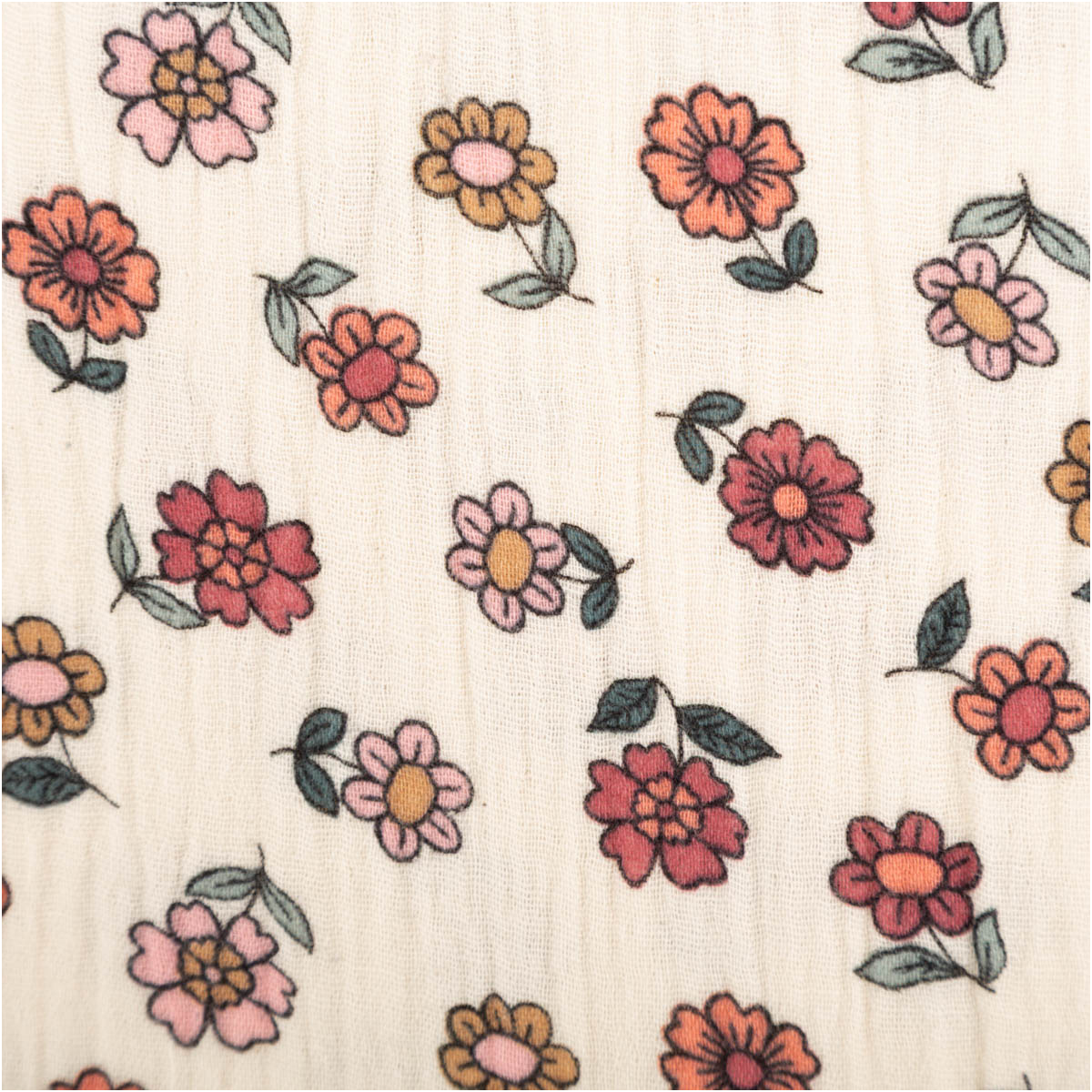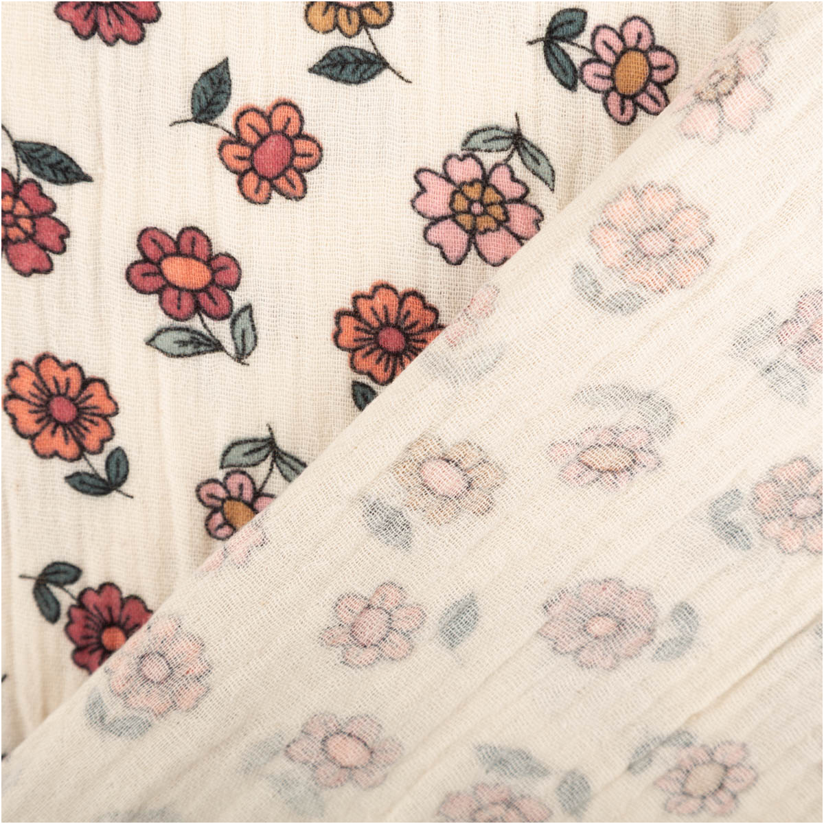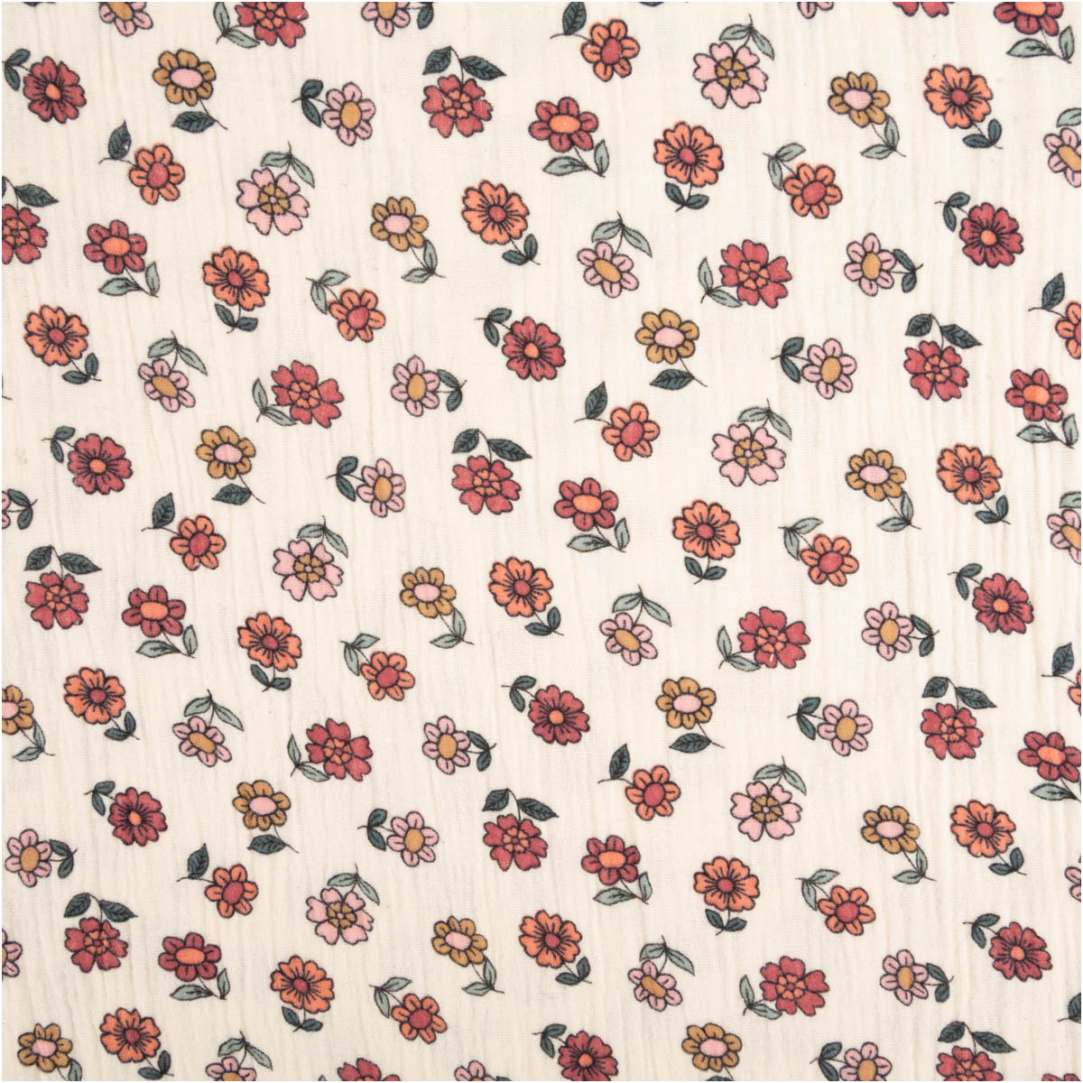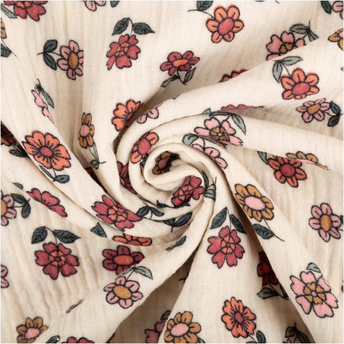 Musselin Stoff Blümchen als Meterware in Ecru, Rosa und Rot