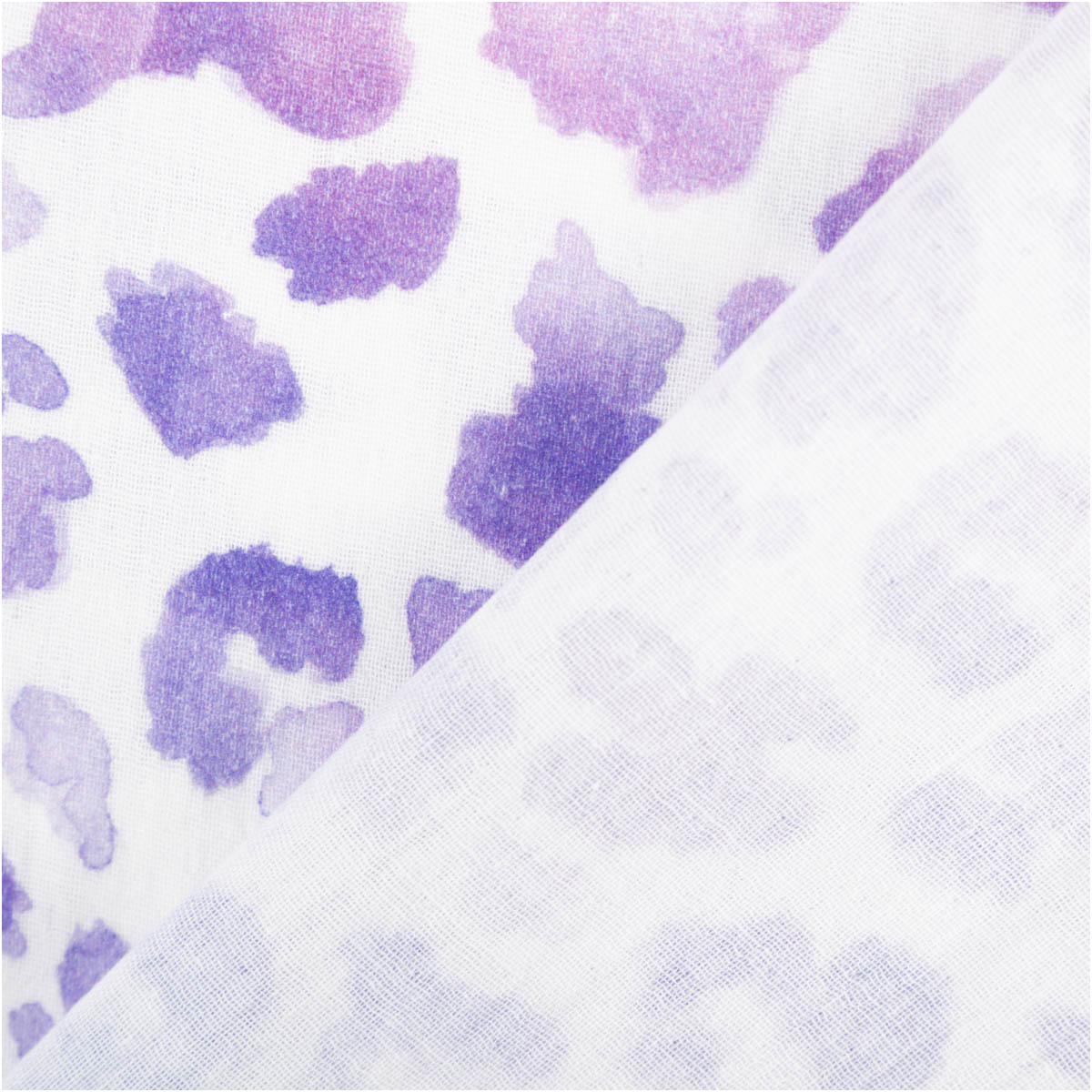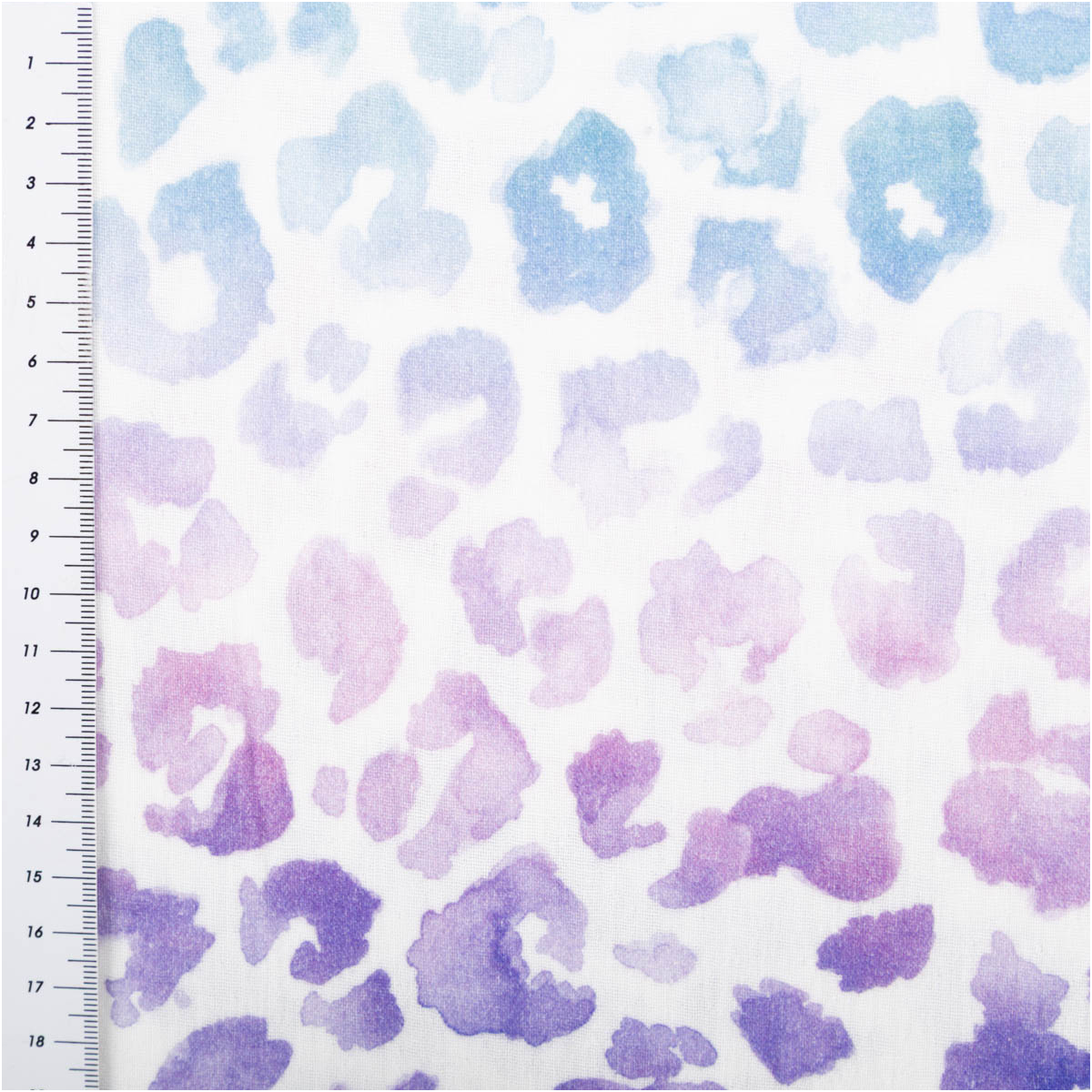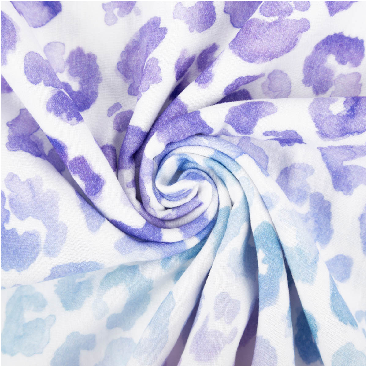 Musselin Stoff mit Farbverlauf und Leo-Print – von Blau bis Lila auf Weiß