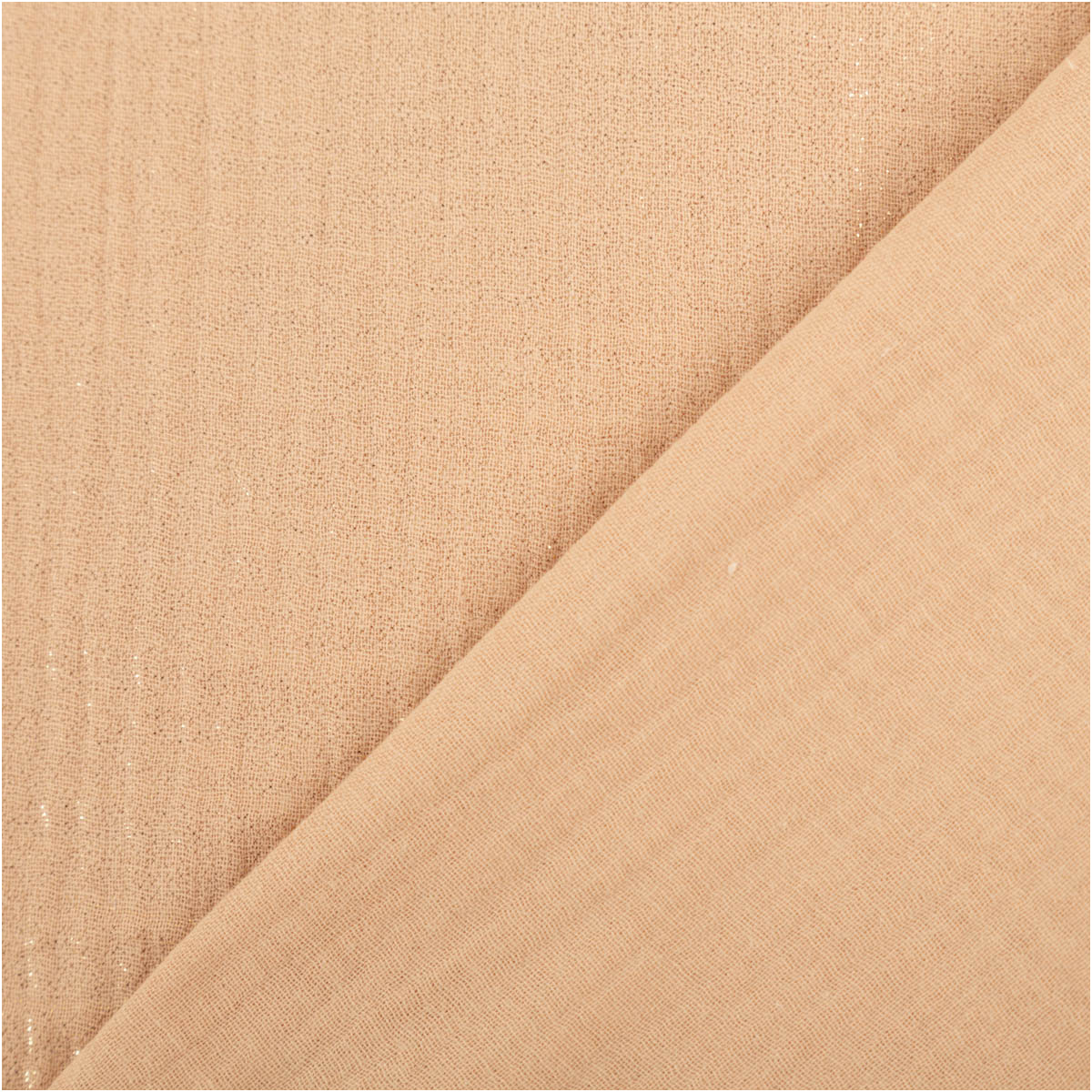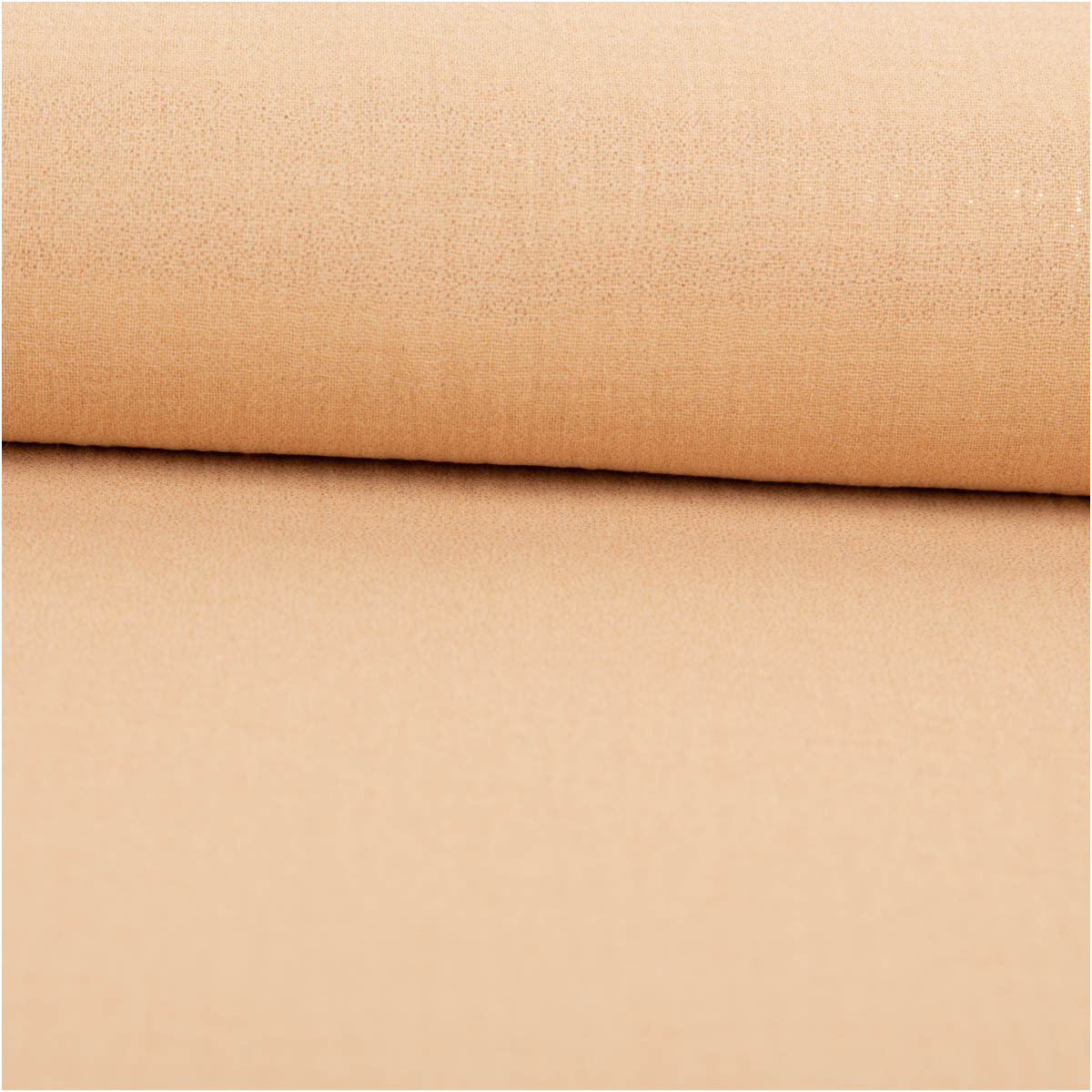 Dieser Musselin Stoff aus 100 % Baumwolle in Beige verbindet angenehme Natürlichkeit mit einem dezenten Glitzereffekt. Die zweilagige Double-Gauze-Qualität sorgt für die typische weiche Crinkle-Struktur, während feine Glitzerakzente dem Stoff eine edle und besondere Ausstrahlung verleihen. So entsteht ein Material, das leicht, hautfreundlich und vielseitig einsetzbar ist.