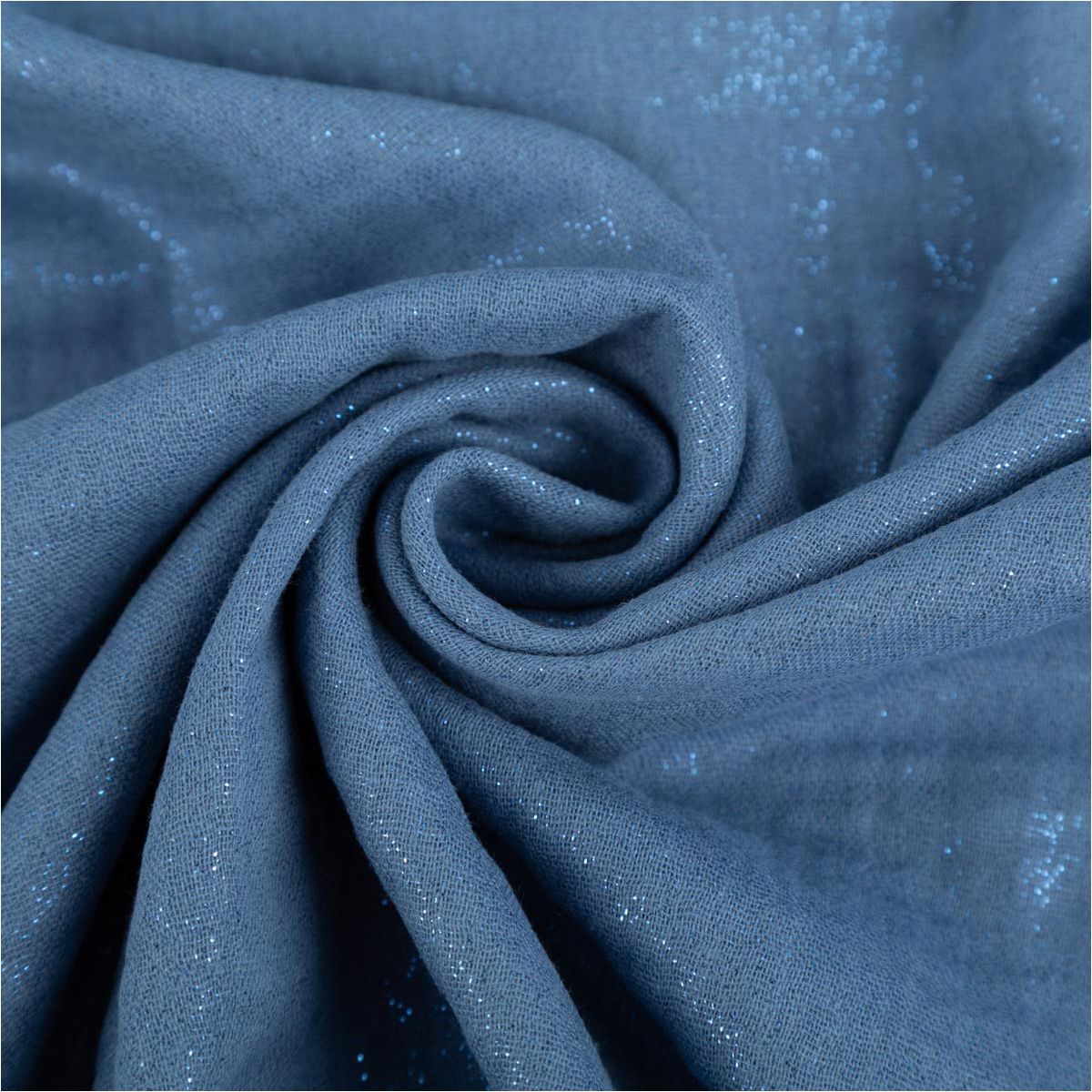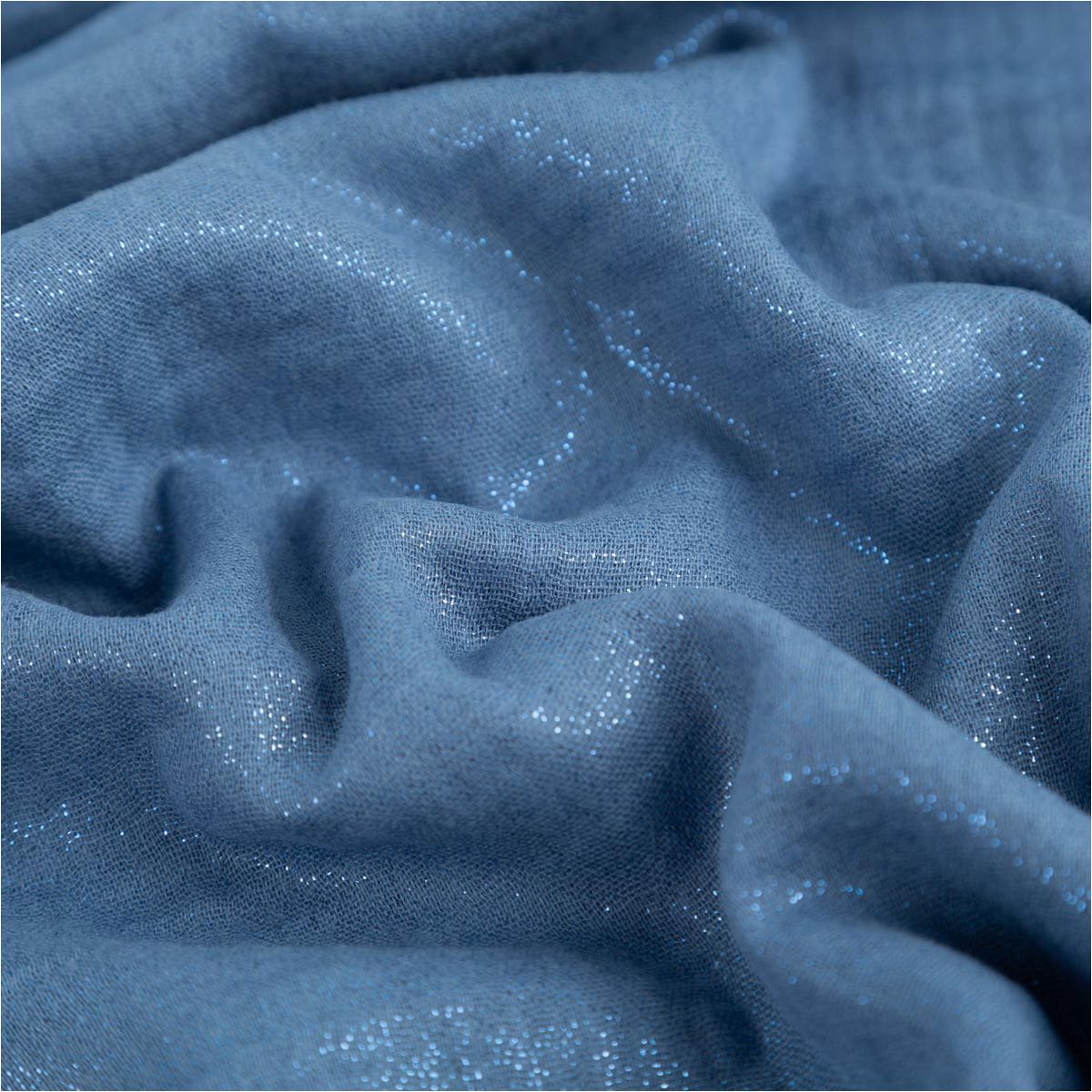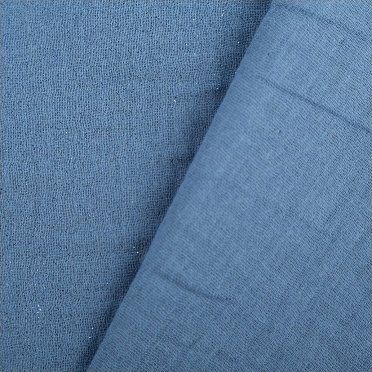 Dieser hochwertige Musselin Stoff in Blau kombiniert die beliebte, zweilagige Crinkle-Struktur mit feinen Glitzereffekten. Das Ergebnis ist ein Stoff, der leicht, weich und atmungsaktiv ist und deinen Nähprojekten eine elegante, besondere Note verleiht. Ideal für alle, die natürliche Materialien mit einem Hauch Glamour verbinden möchten.