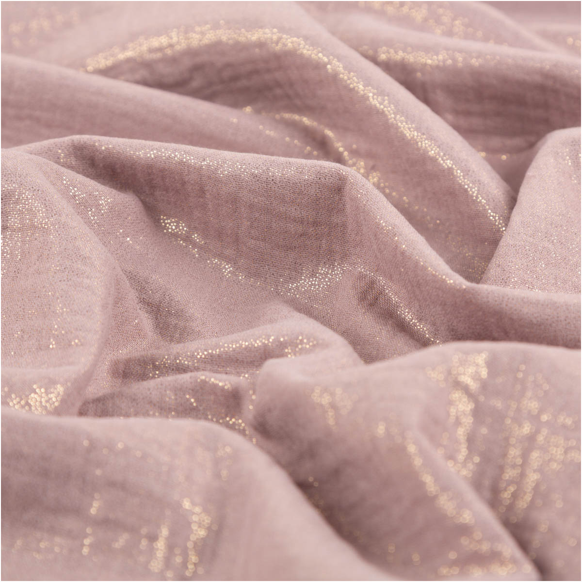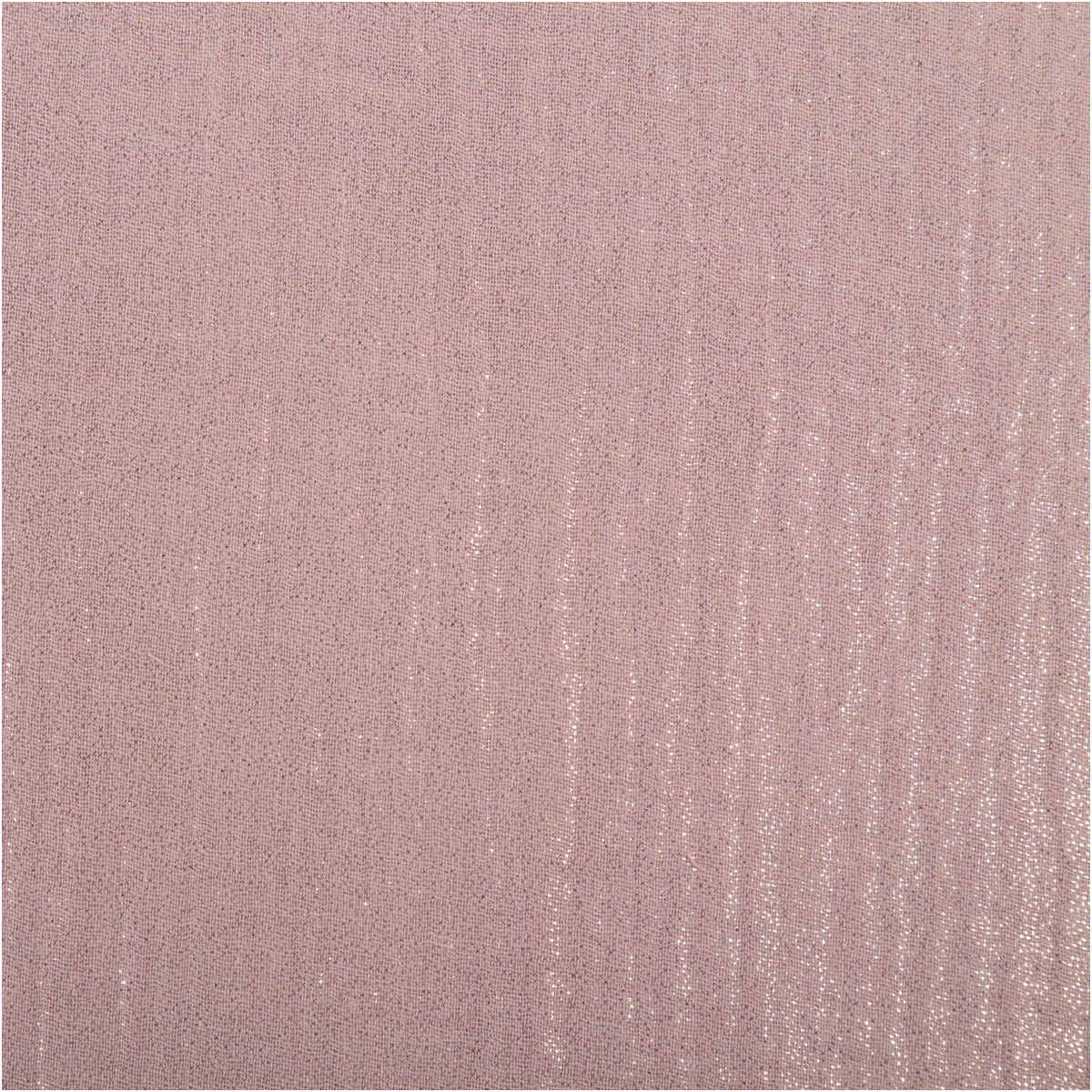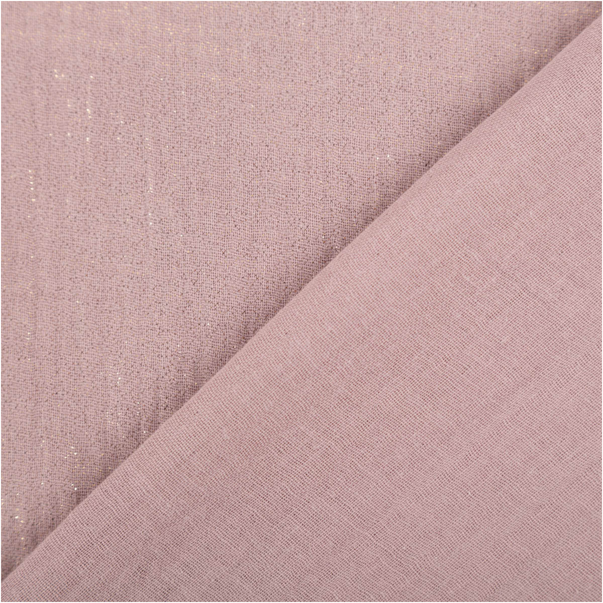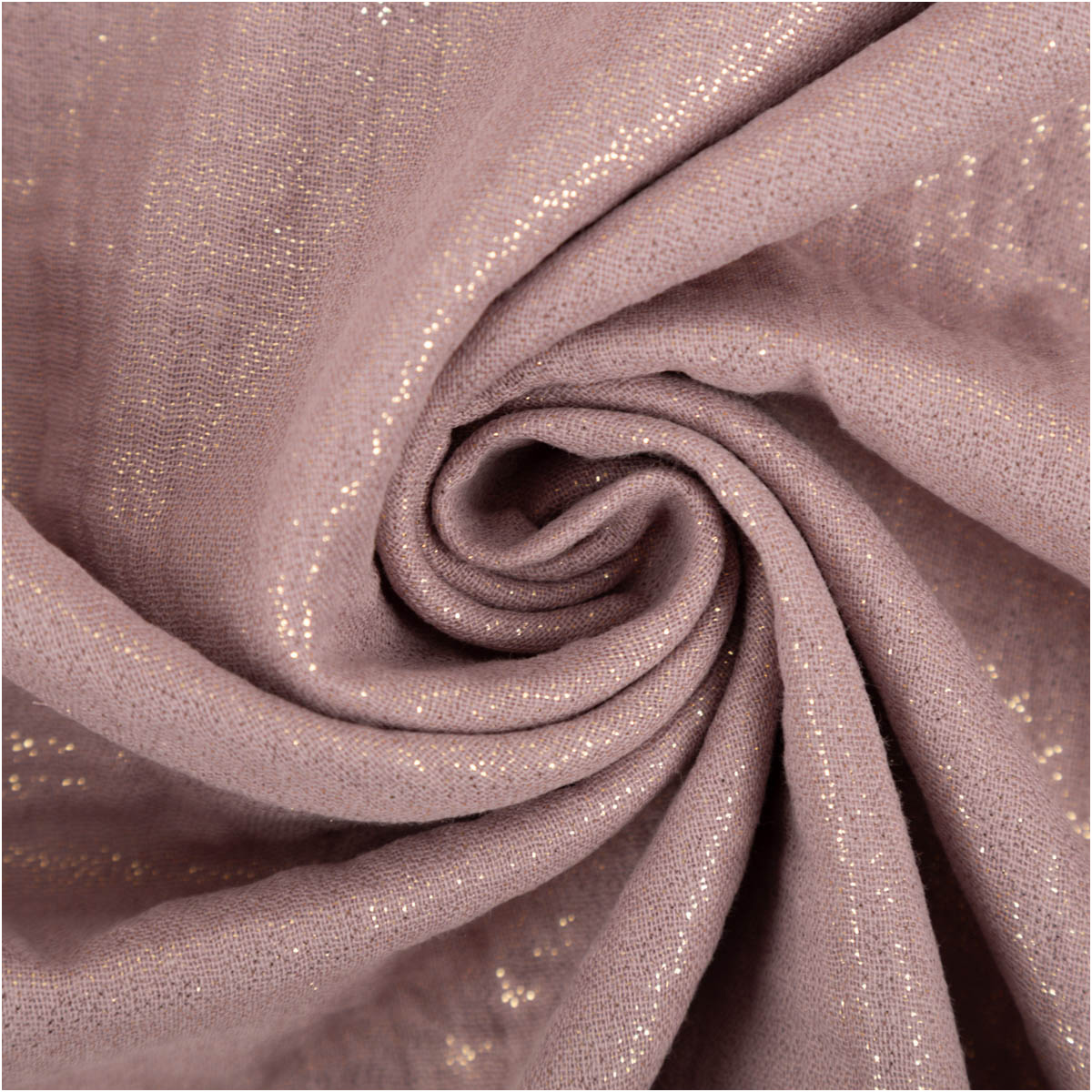Dieser Musselin Stoff aus 100 % Baumwolle in dunklem Puderrosa verbindet angenehme Natürlichkeit mit einem dezenten Glitzereffekt. Die zweilagige Double-Gauze-Qualität sorgt für die typische weiche Crinkle-Struktur, während feine Glitzerakzente dem Stoff eine edle und besondere Ausstrahlung verleihen. So entsteht ein Material, das leicht, hautfreundlich und vielseitig einsetzbar ist.