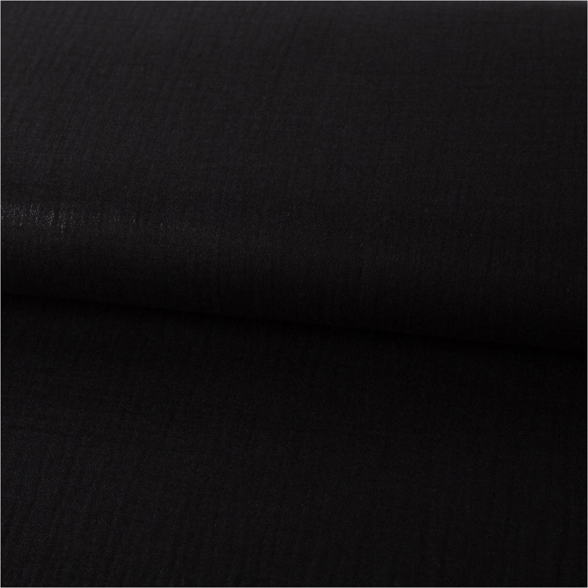 Dieser hochwertige Musselin Stoff in Schwarz kombiniert die beliebte, zweilagige Crinkle-Struktur mit feinen Glitzereffekten. Das Ergebnis ist ein Stoff, der leicht, weich und atmungsaktiv ist und deinen Nähprojekten eine elegante, besondere Note verleiht. Ideal für alle, die natürliche Materialien mit einem Hauch Glamour verbinden möchten.