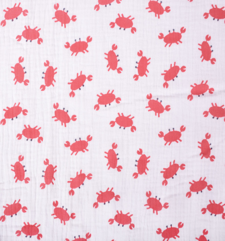 Musselin Stoff Baumwolle Pincemi Krabben weiß rot 1,30m Breite