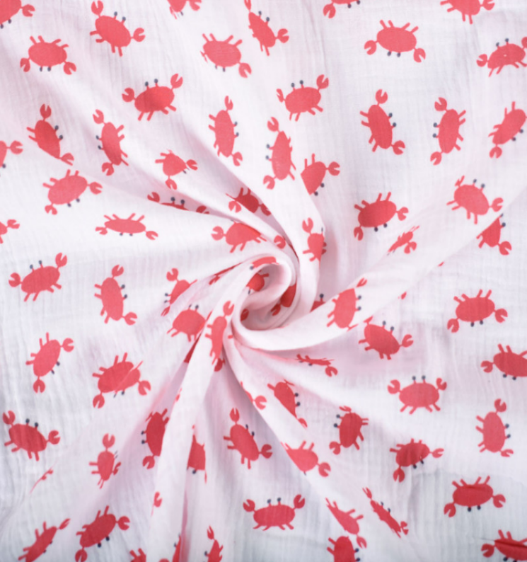 Musselin Stoff aus Baumwolle mit Krabben-Print in Weiß und Rot