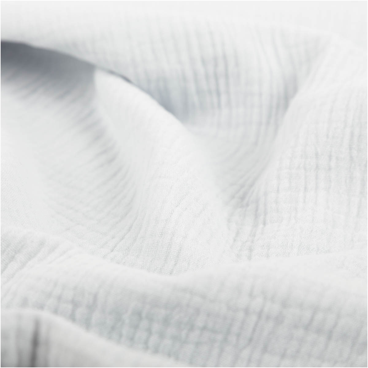 Der Musselin besteht aus zwei locker miteinander verbundenen Stofflagen. Diese spezielle Webart verleiht dem Stoff seine charakteristische Knitteroptik und sorgt für eine vergrößerte Oberfläche. Dadurch fühlt sich der Stoff besonders fluffig, leicht und hautfreundlich an. Die natürliche Baumwollqualität macht ihn zu einem beliebten Stoff für Projekte mit hohem Wohlfühlfaktor.
