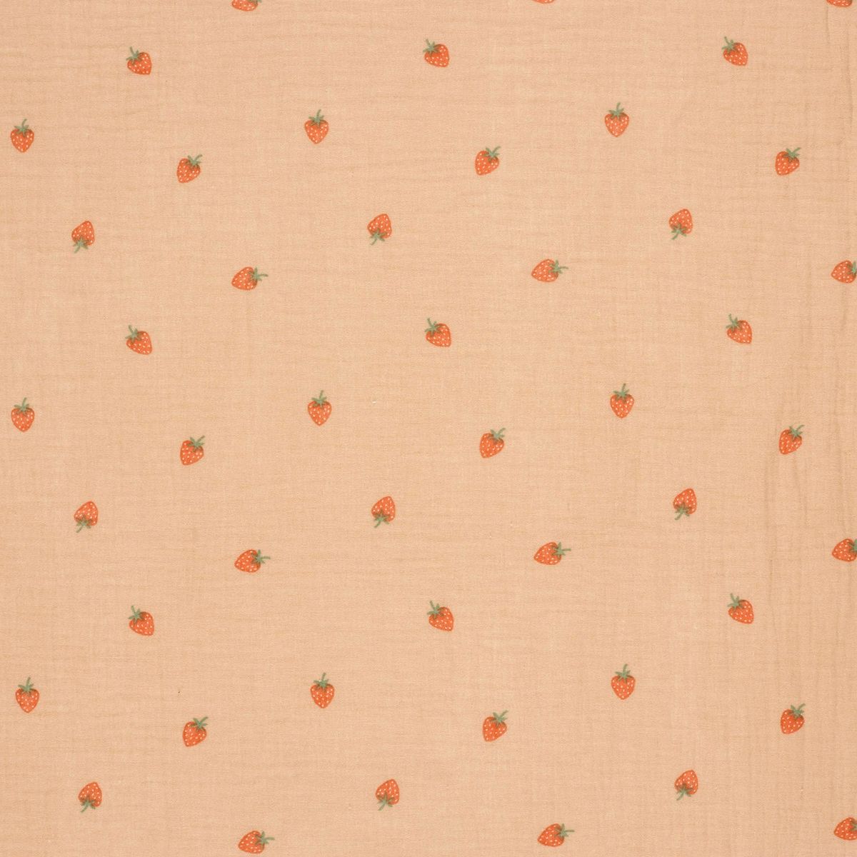 Musselin Stoff Baumwollstoff Erdbeeren rosa apricot 1,50m Breite
