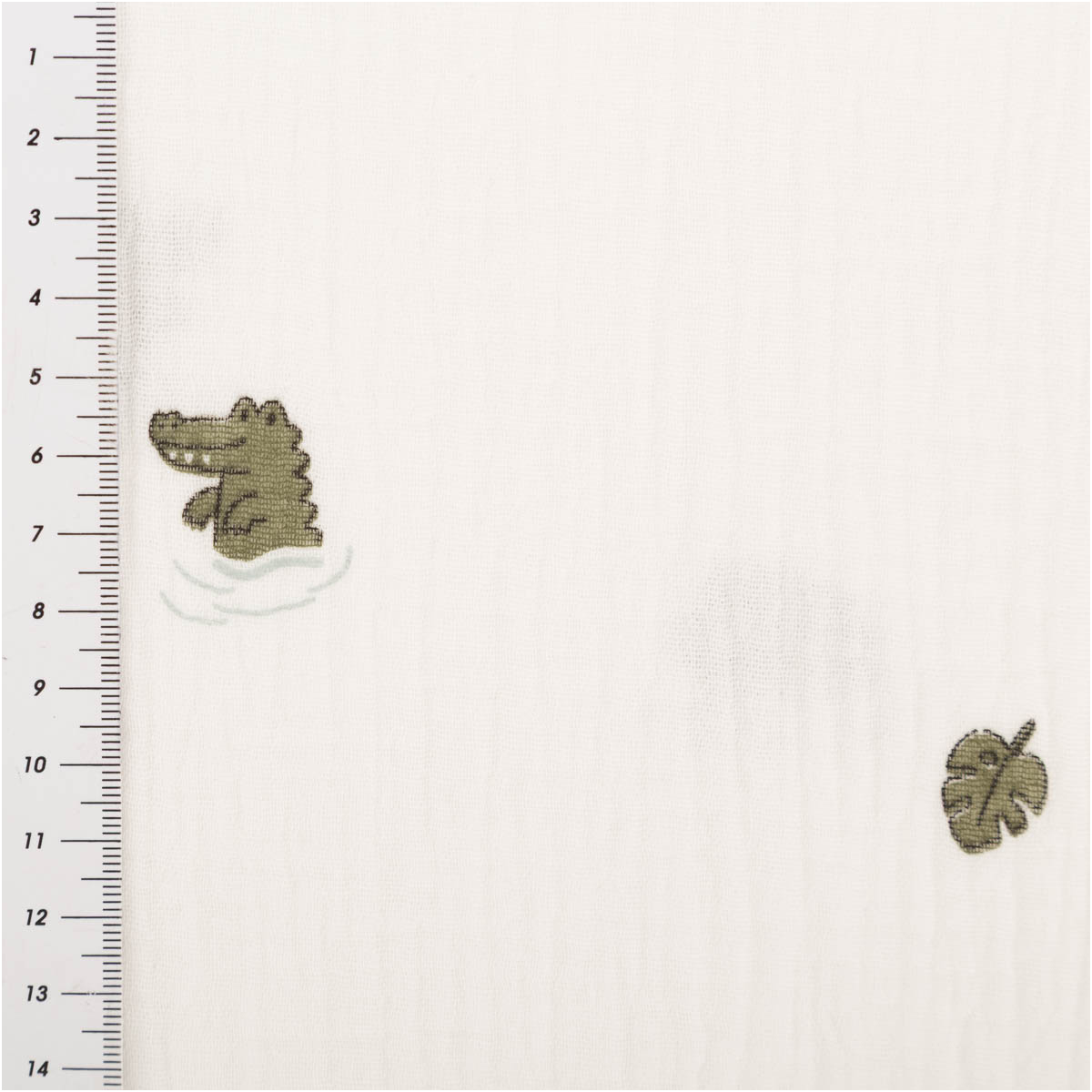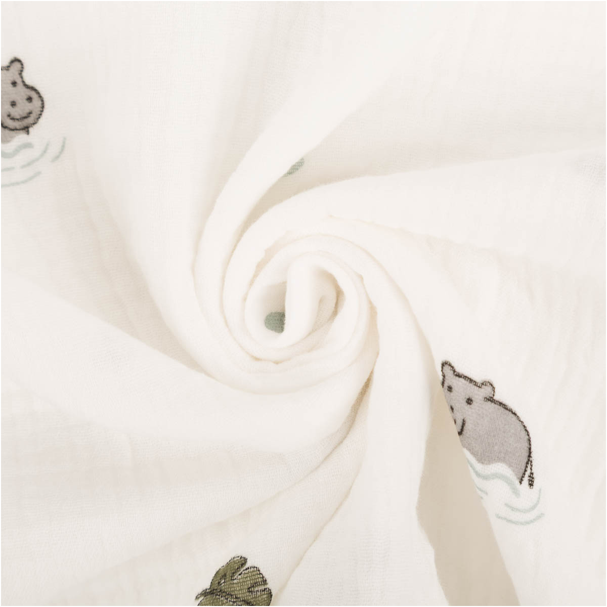 Musselin Stoff Nilpferd Krokodil in Wollweiß – weich, luftig und liebevoll gestaltet