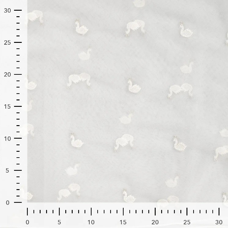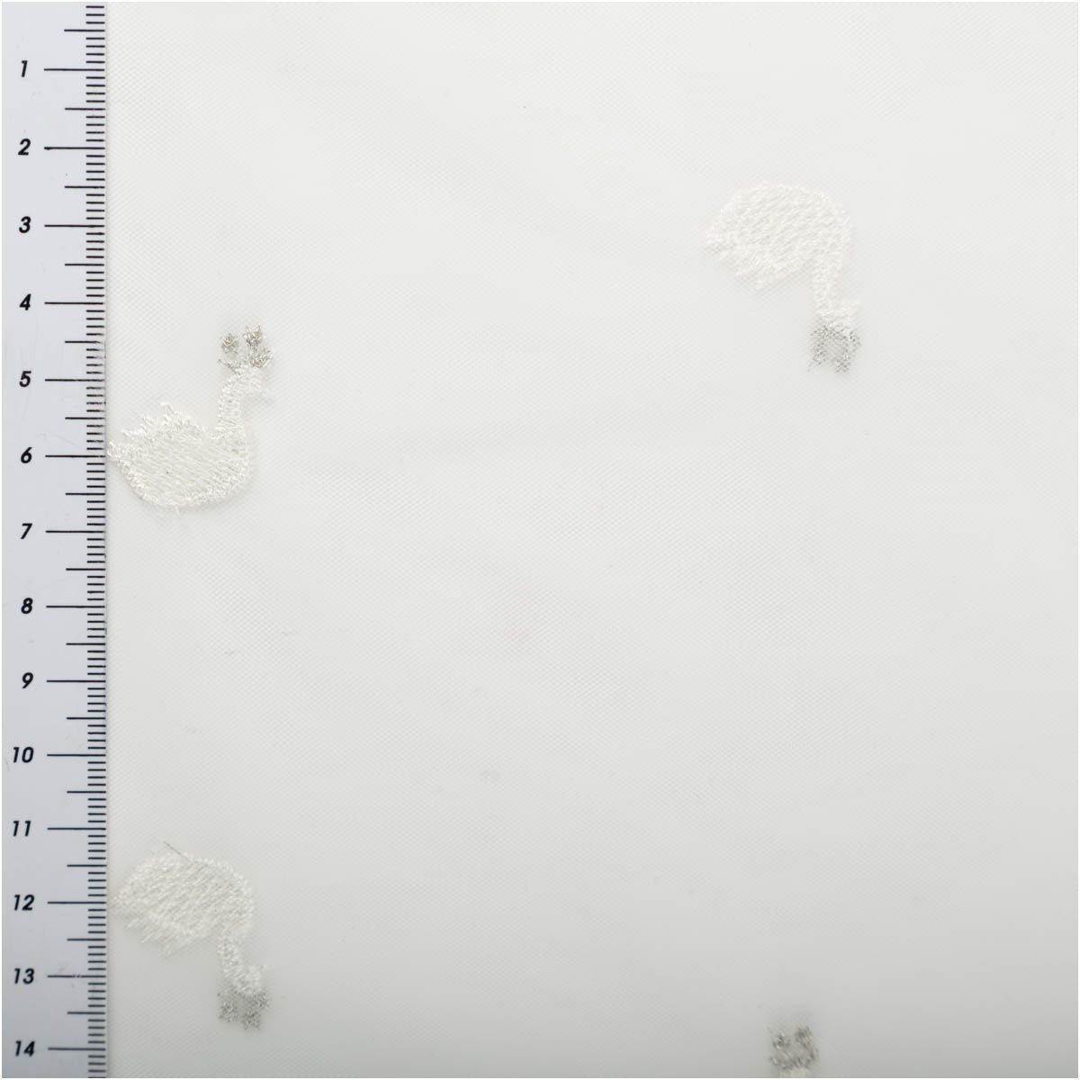 Tüll Stoff Schwan Stickerei weiß 125 cm Breite