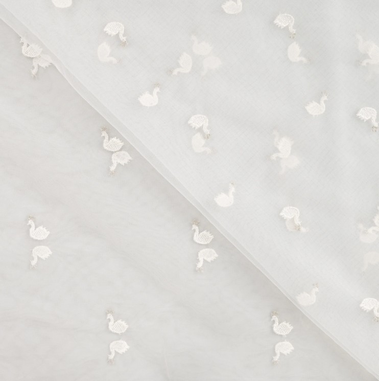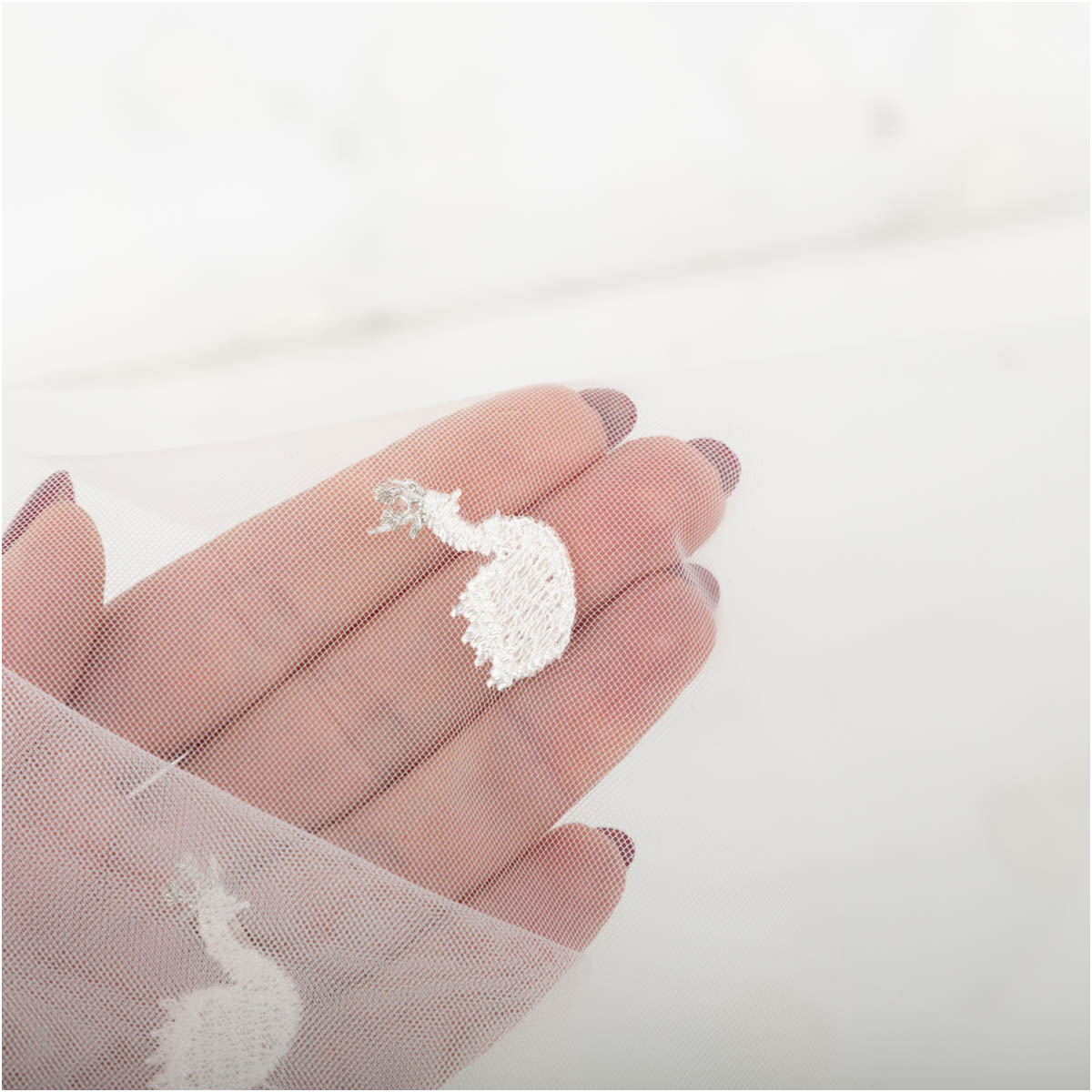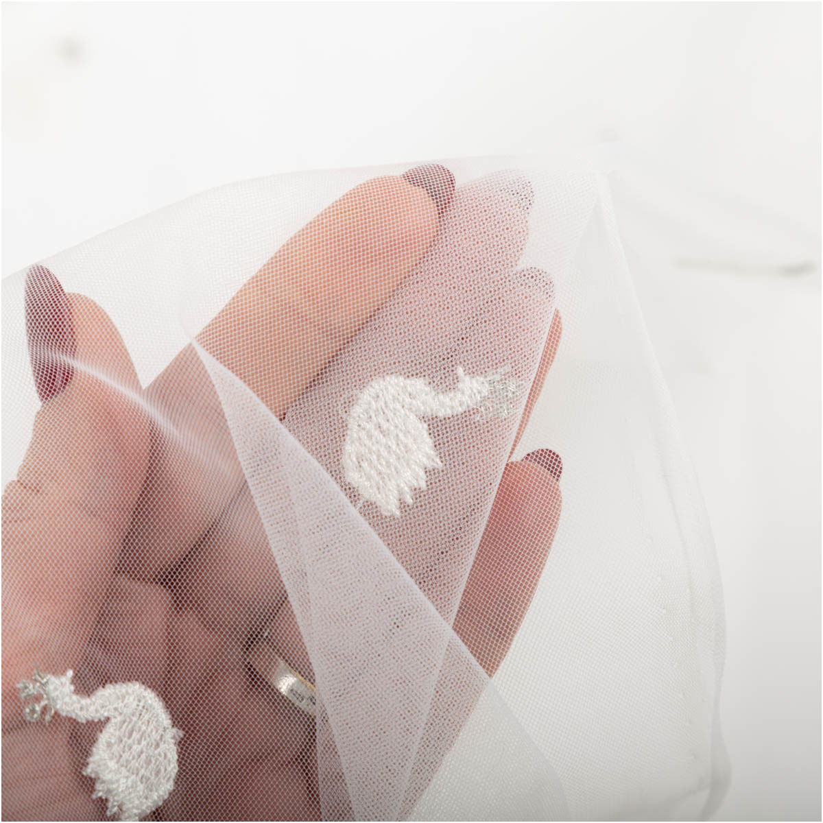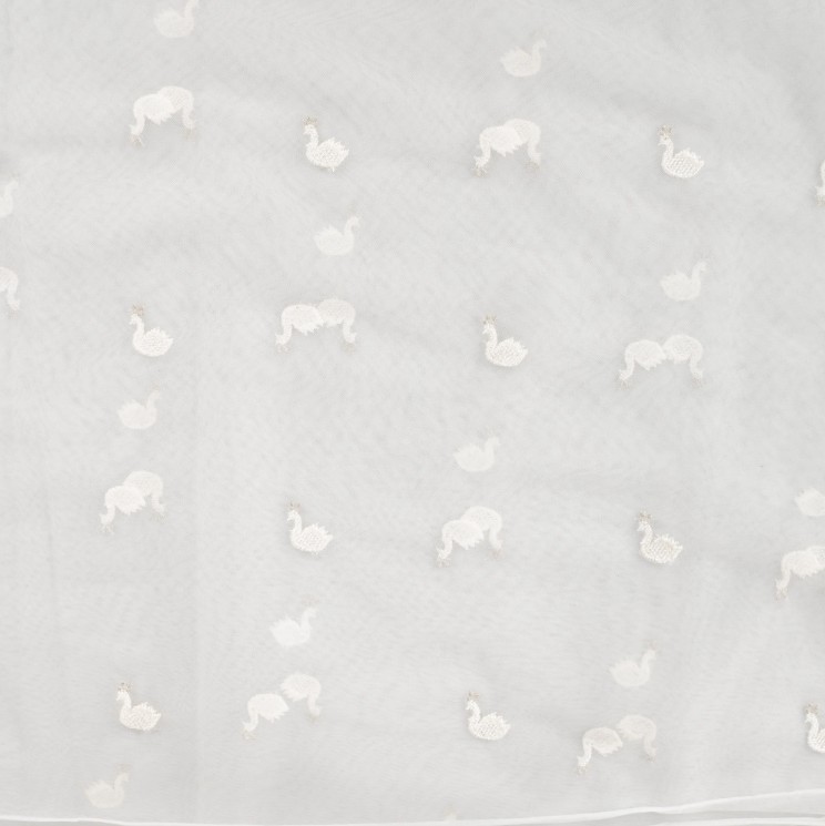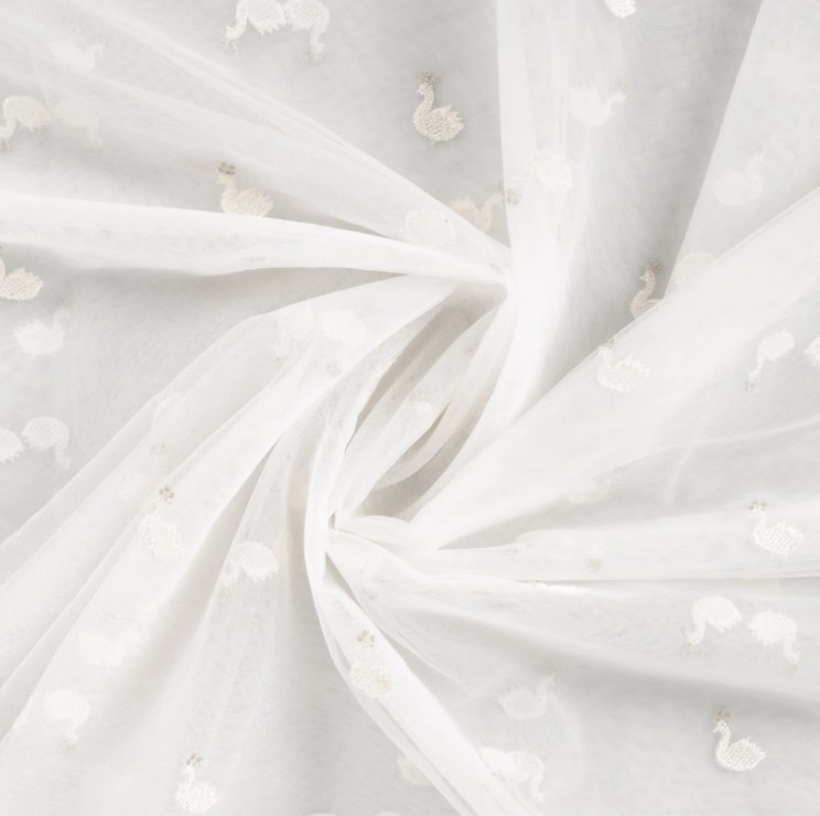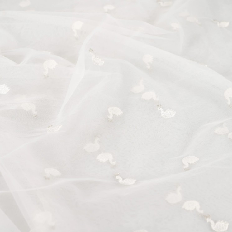 Zarter Softtüll in Weiß mit feiner Schwan-Stickerei