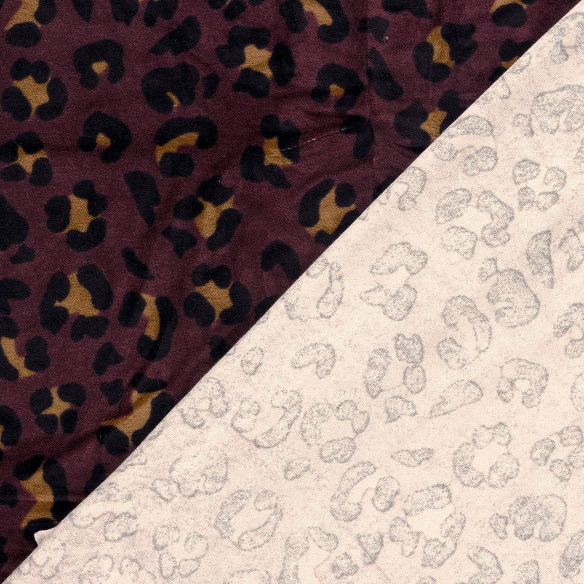 Dieser Nicki Stoff mit Velours-Oberfläche fühlt sich herrlich samtig an und ist dank leichtem Stretch superbequem. Das Leo-Dessin in Aubergine macht aus jedem Projekt einen besonderen Hingucker – perfekt für gemütliche Lieblingsstücke für Groß und Klein.