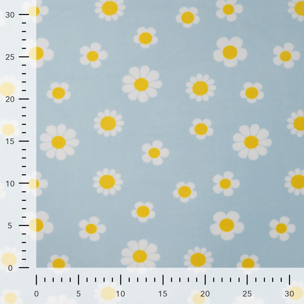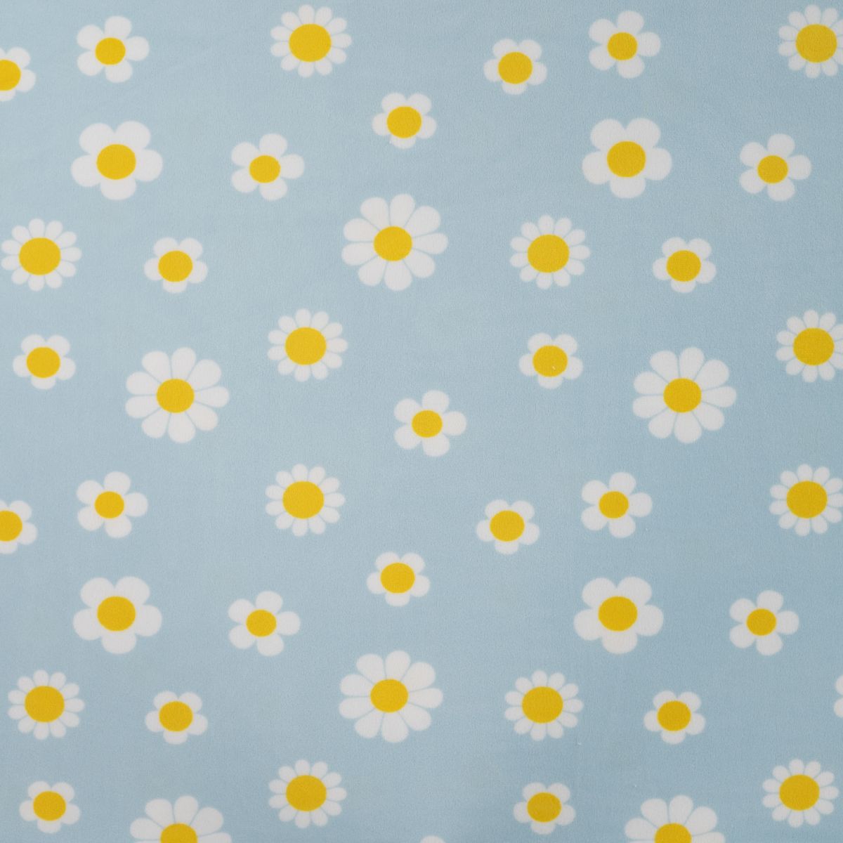 Kuschelig weicher Nicki Stoff mit weißen Blumen auf hellblauem Hintergrund für gemütliche und kreative Nähprojekte