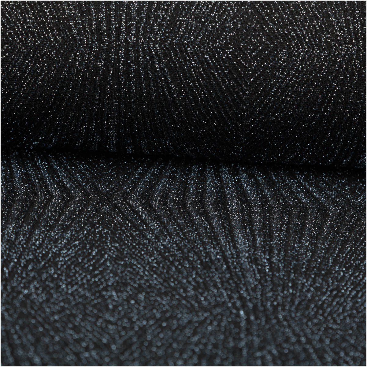 Edler Metallic-Jersey – schwarzer Grundton mit schimmerndem Silber und geometrischem Muster