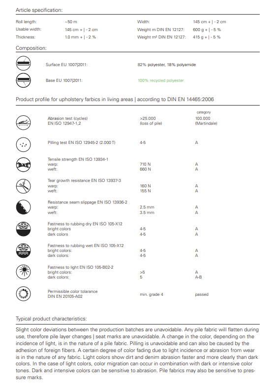 • Extrem robust dank 100.000 Scheuertouren und damit ideal für Polsterungen aller Art