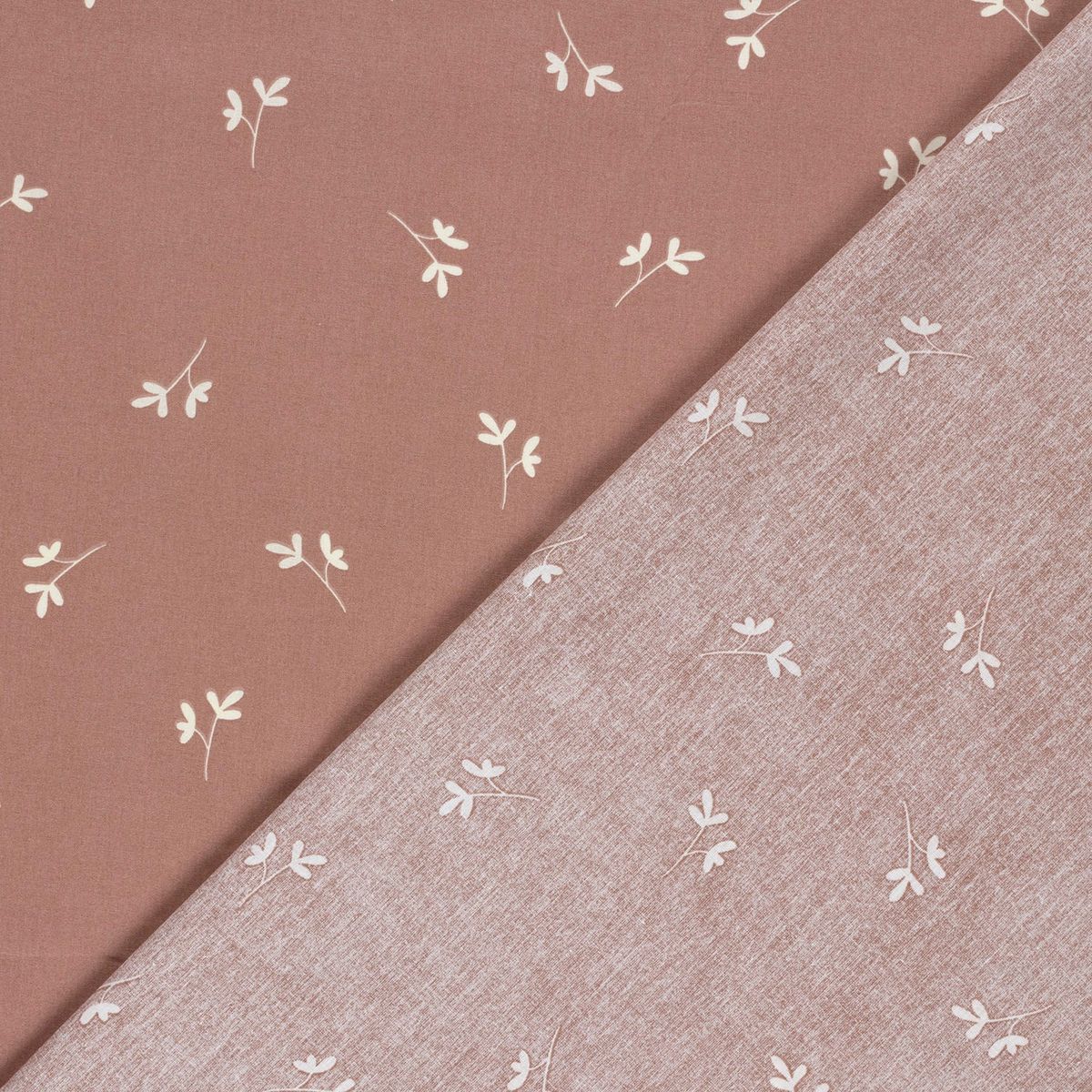 DEZENTES DESIGN: Das Allover-Blättermotiv auf mauvefarbenem Grund verleiht deinen Projekten eine moderne, natürliche Optik – ideal für Kleidung und Dekoration.