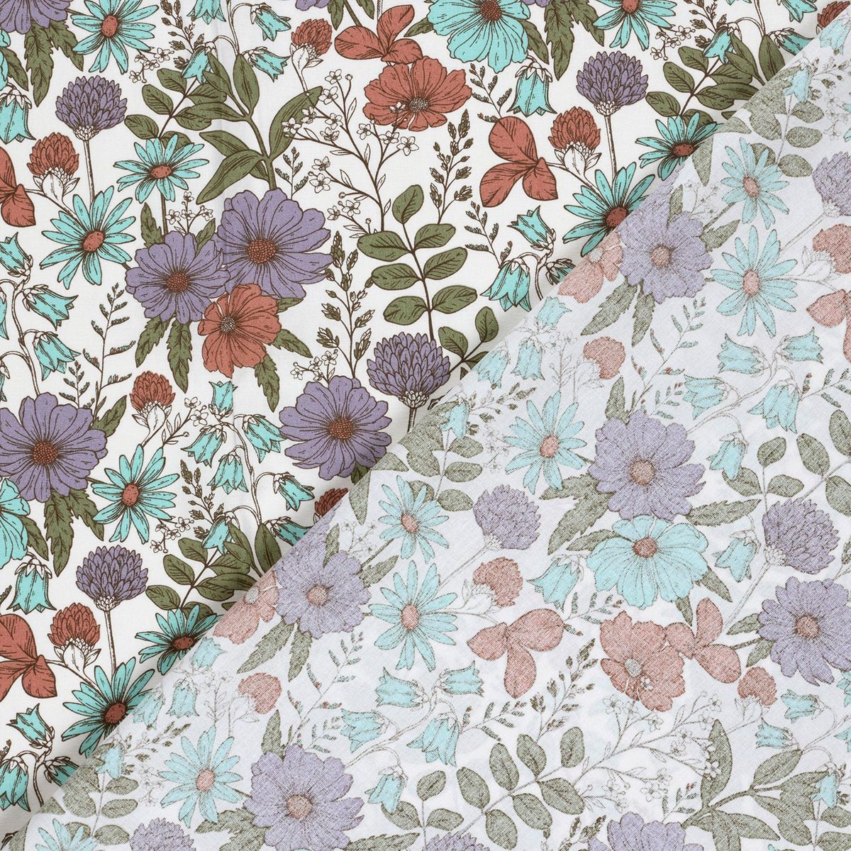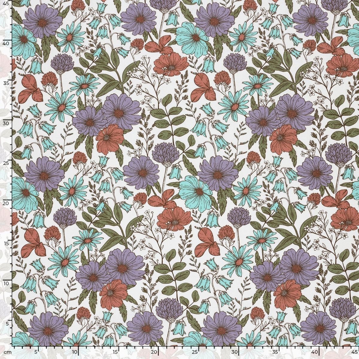 Dieser Baumwollstoff Popeline verbindet eine schöne florale Optik mit den praktischen Vorteilen einer hochwertigen Baumwollqualität. Der Stoff ist leicht, angenehm zu verarbeiten und vielseitig einsetzbar. Ob für Kleidung, Heimtextilien oder Accessoires – mit diesem Blumenstoff in Wollweiß, Lila, Türkis, Rot und Grün gelingen dir stilvolle Nähprojekte mit besonderem Charakter.
