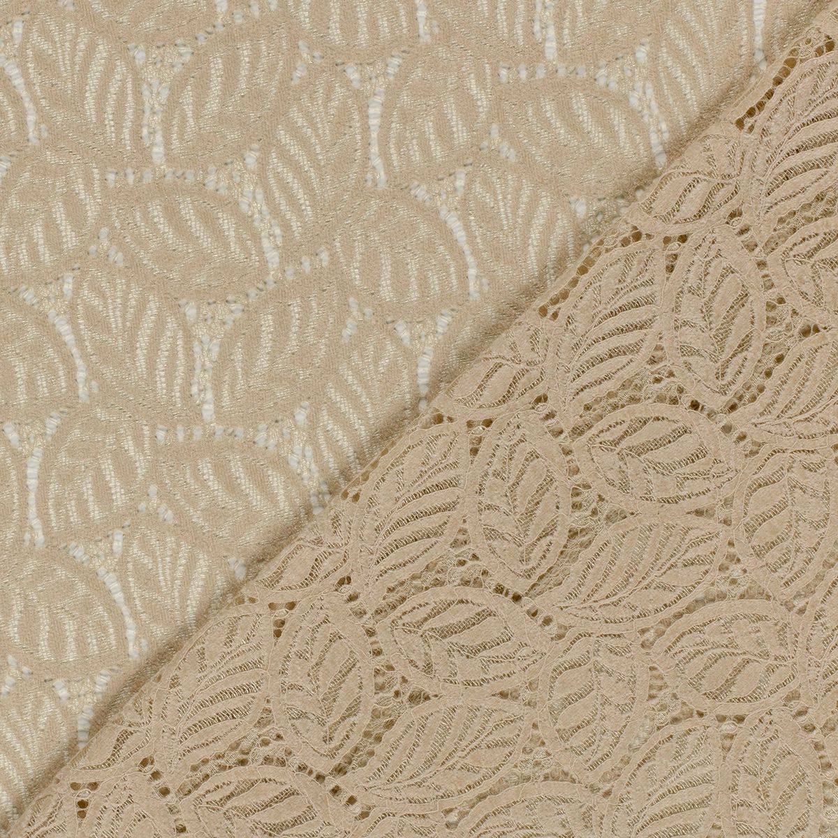 Spitze mit Chenille im Blätterdessin – Meterware beige, 150 cm breit