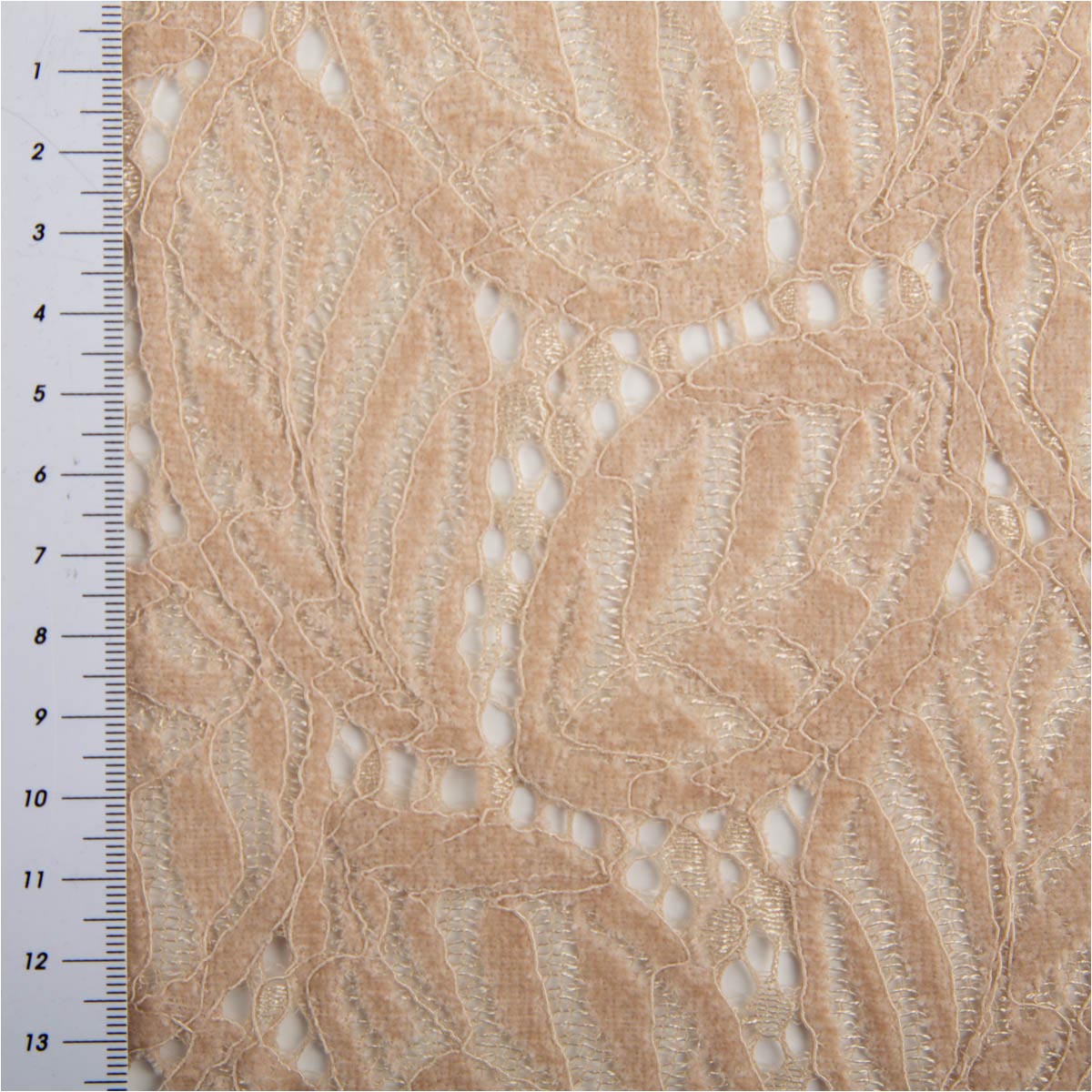 Spitze mit Chenille Blätterdessin Meterware beige 150cm breit