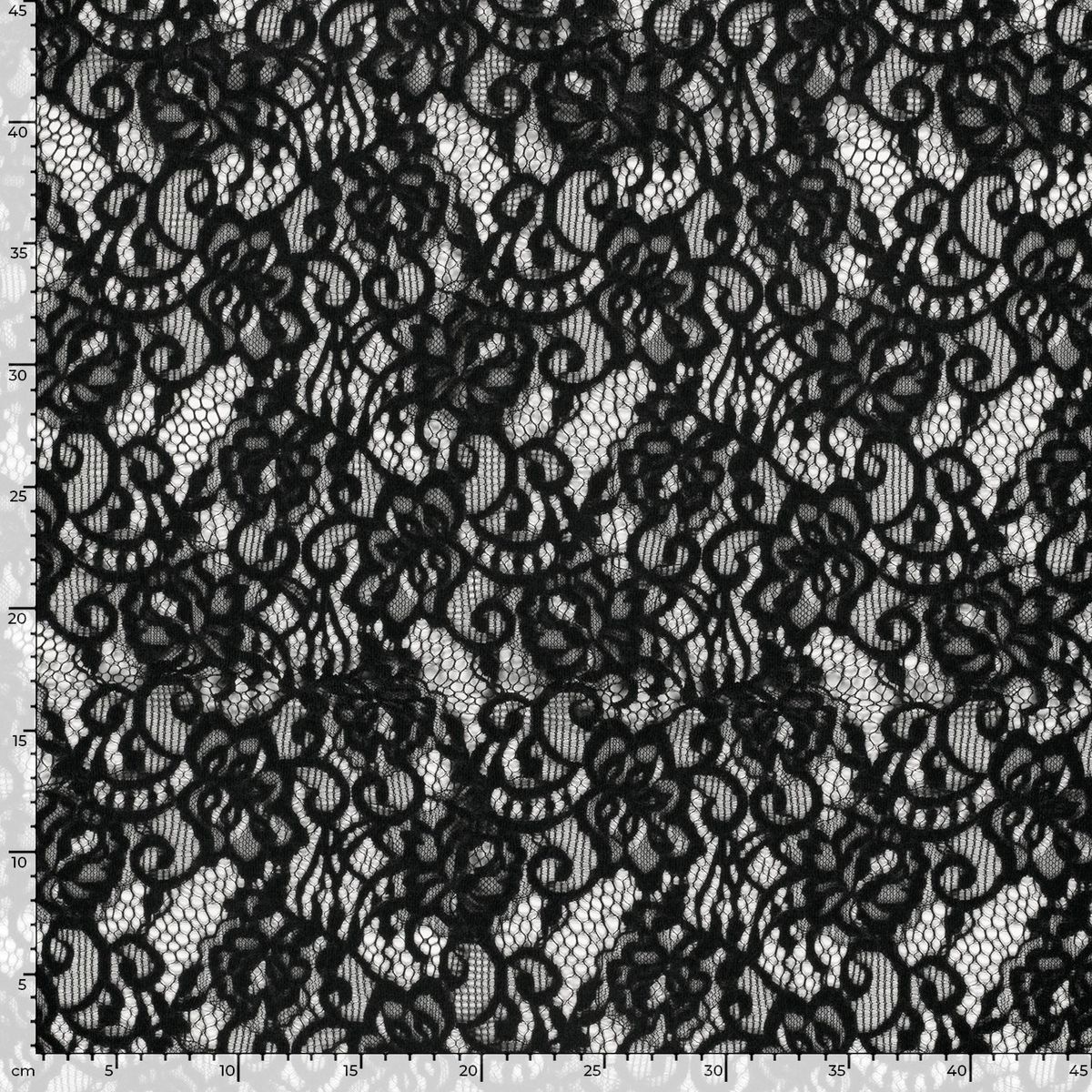 Zarte Chenille-Spitze mit floralem Desssin in Schwarz: halbtransparent, weich im Griff und schadstoffgeprüft. Perfekt für Trachten- und Festtagsmode, Braut-Accessoires sowie dekorative Projekte von Tischläufern bis festlichen Drapierungen