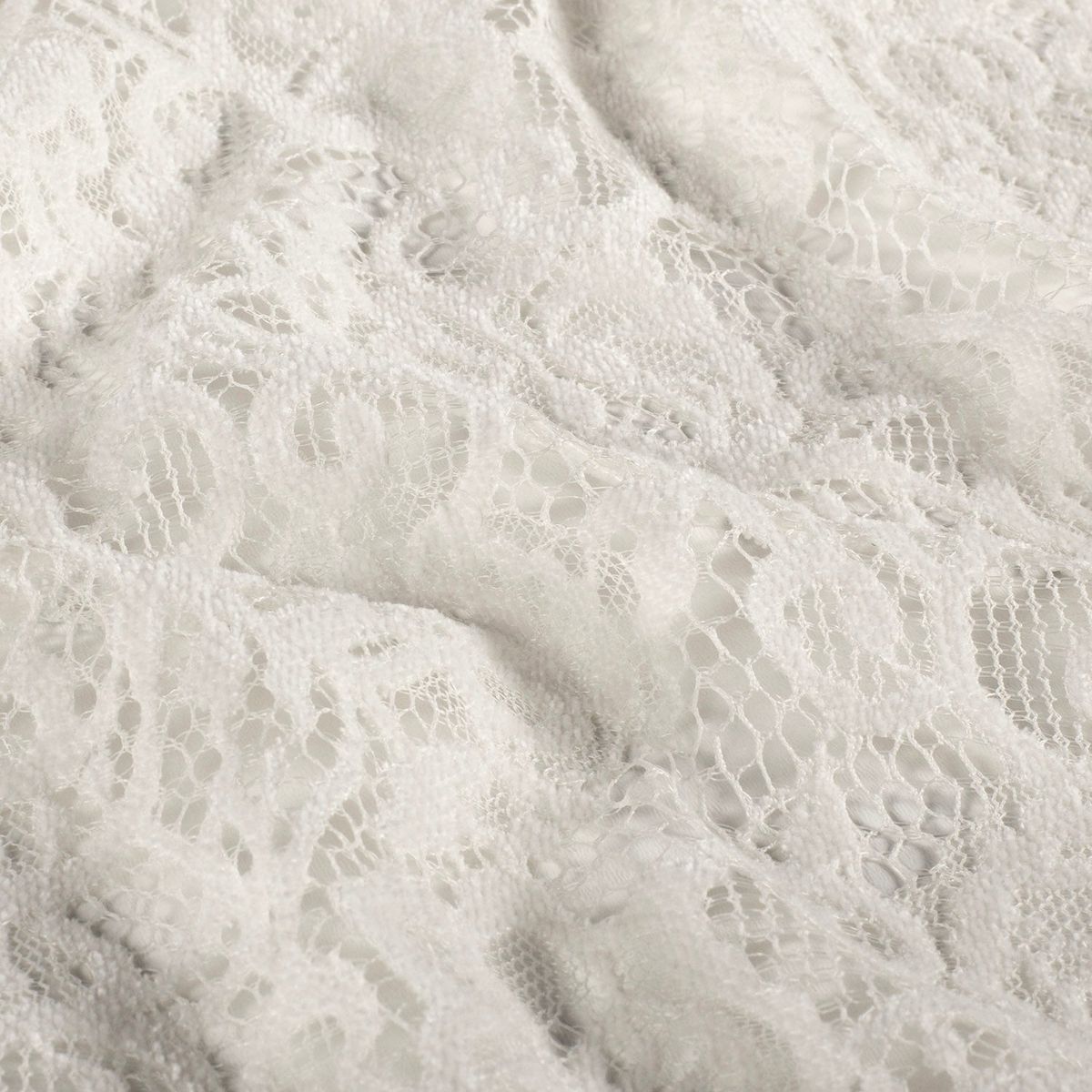 Zarte Chenille-Spitze in Wollweiß mit floralem Muster
