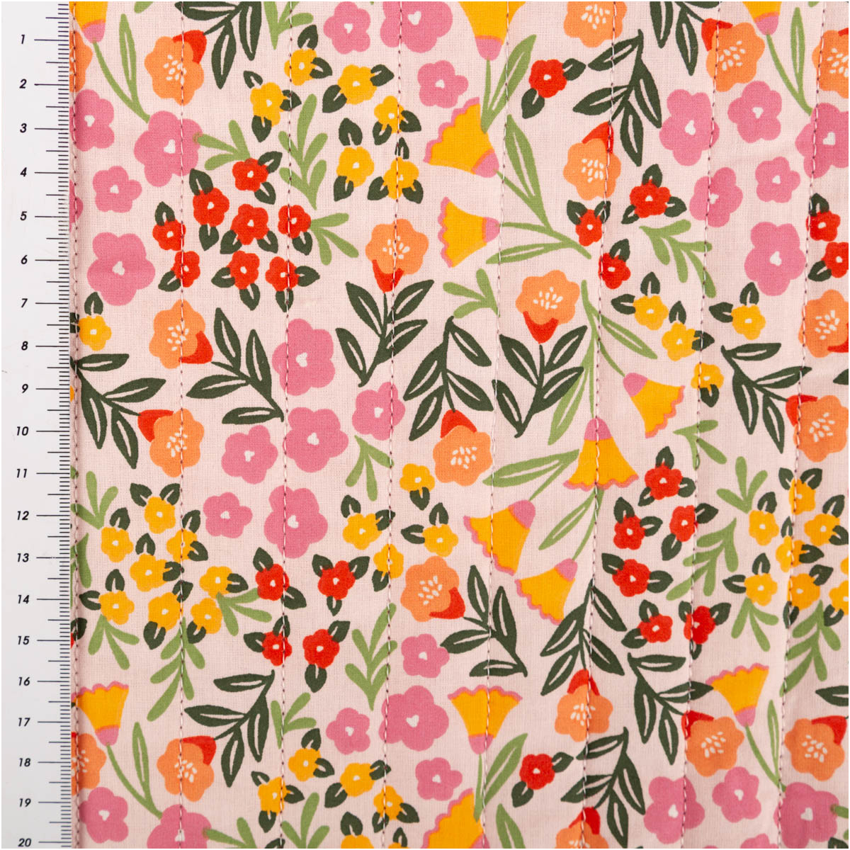 Dieser Musselin Steppstoff mit Blumenmuster ist vielseitig einsetzbar und eignet sich hervorragend für zahlreiche Nähideen: