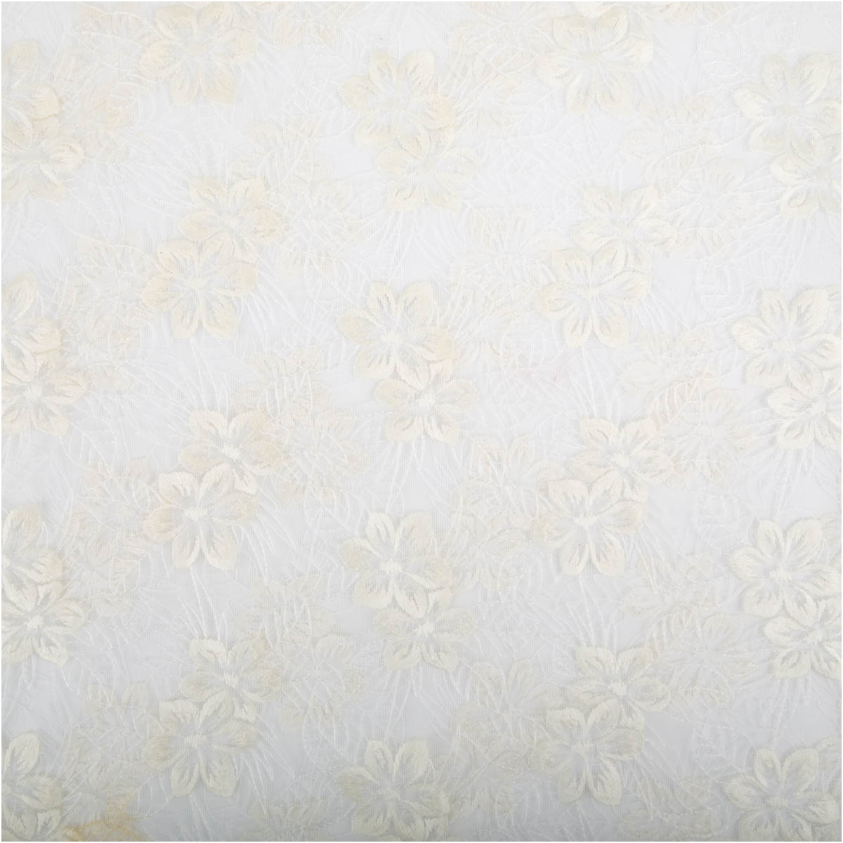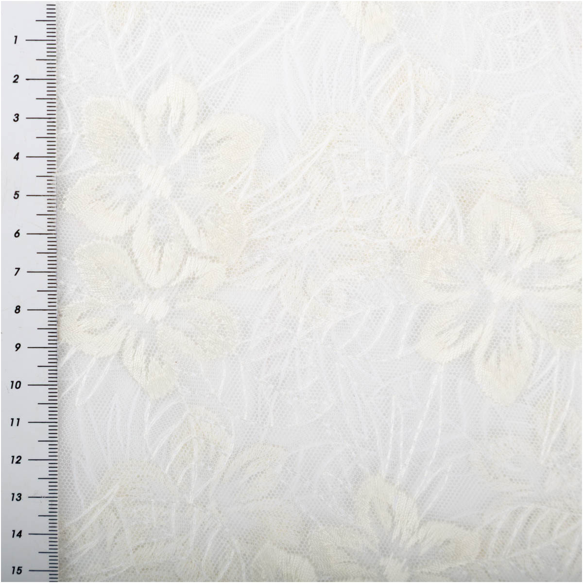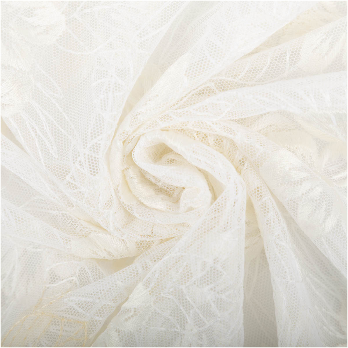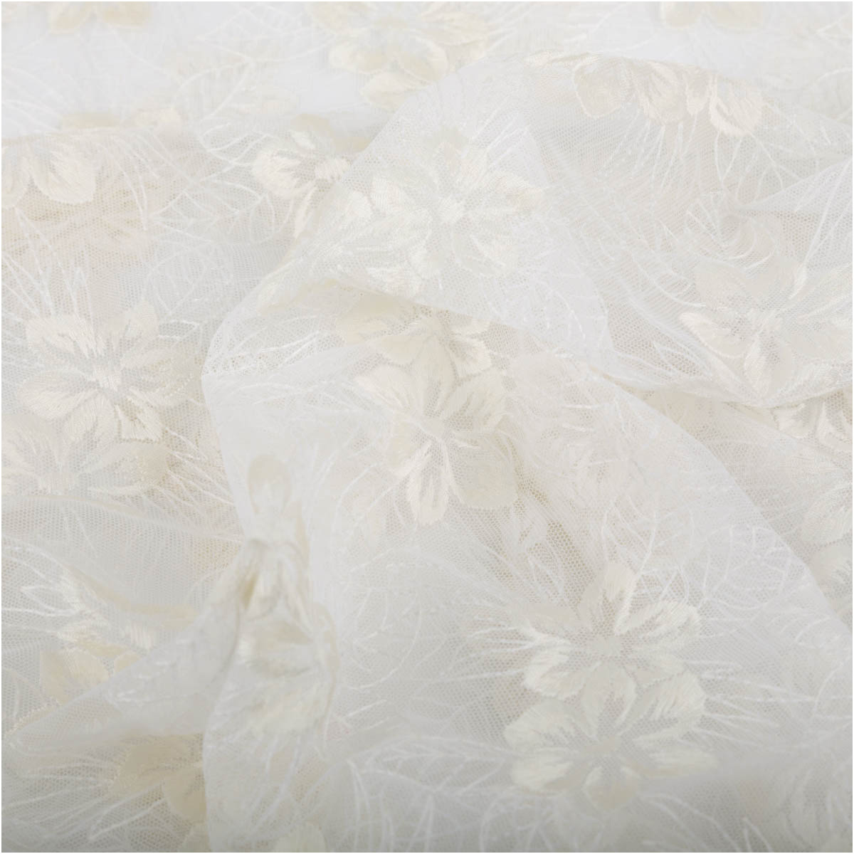 Tüllstoff mit Blumenstickerei wollweiß 140cm breit