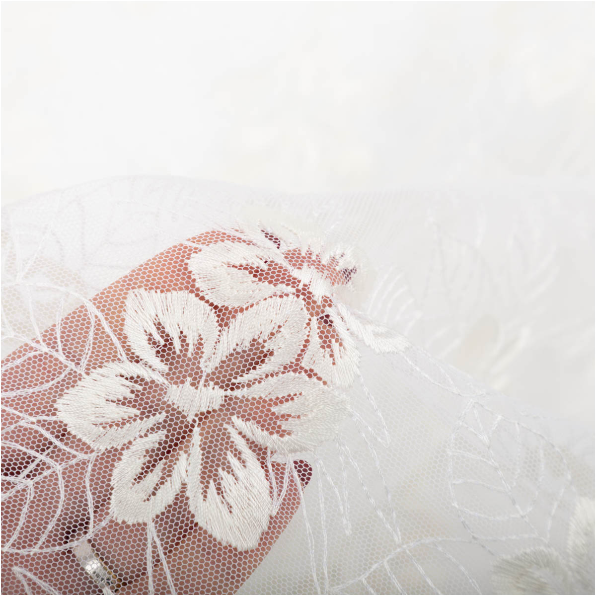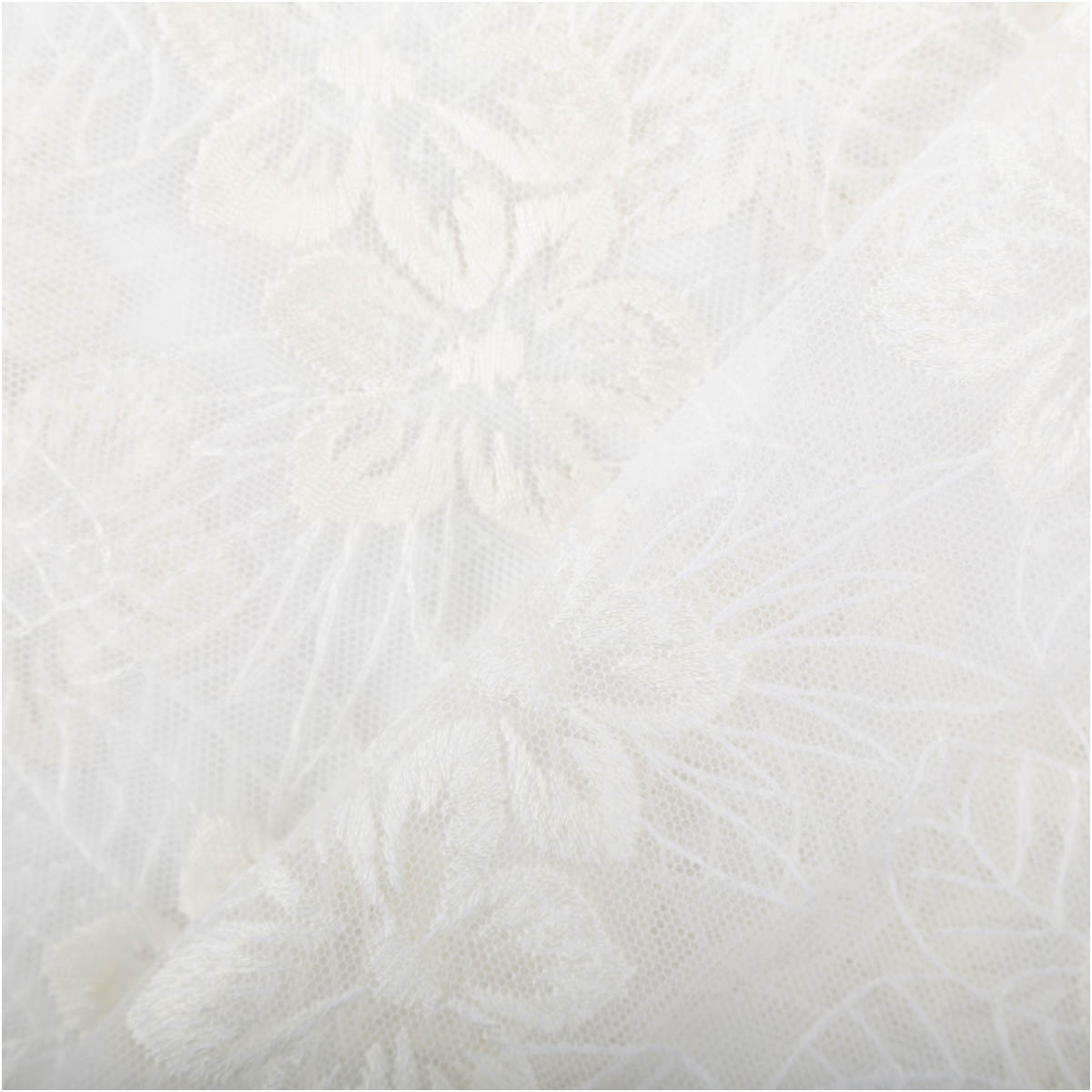 Zarter, transparenter Tüll in Wollweiß mit feiner Blumenstickerei