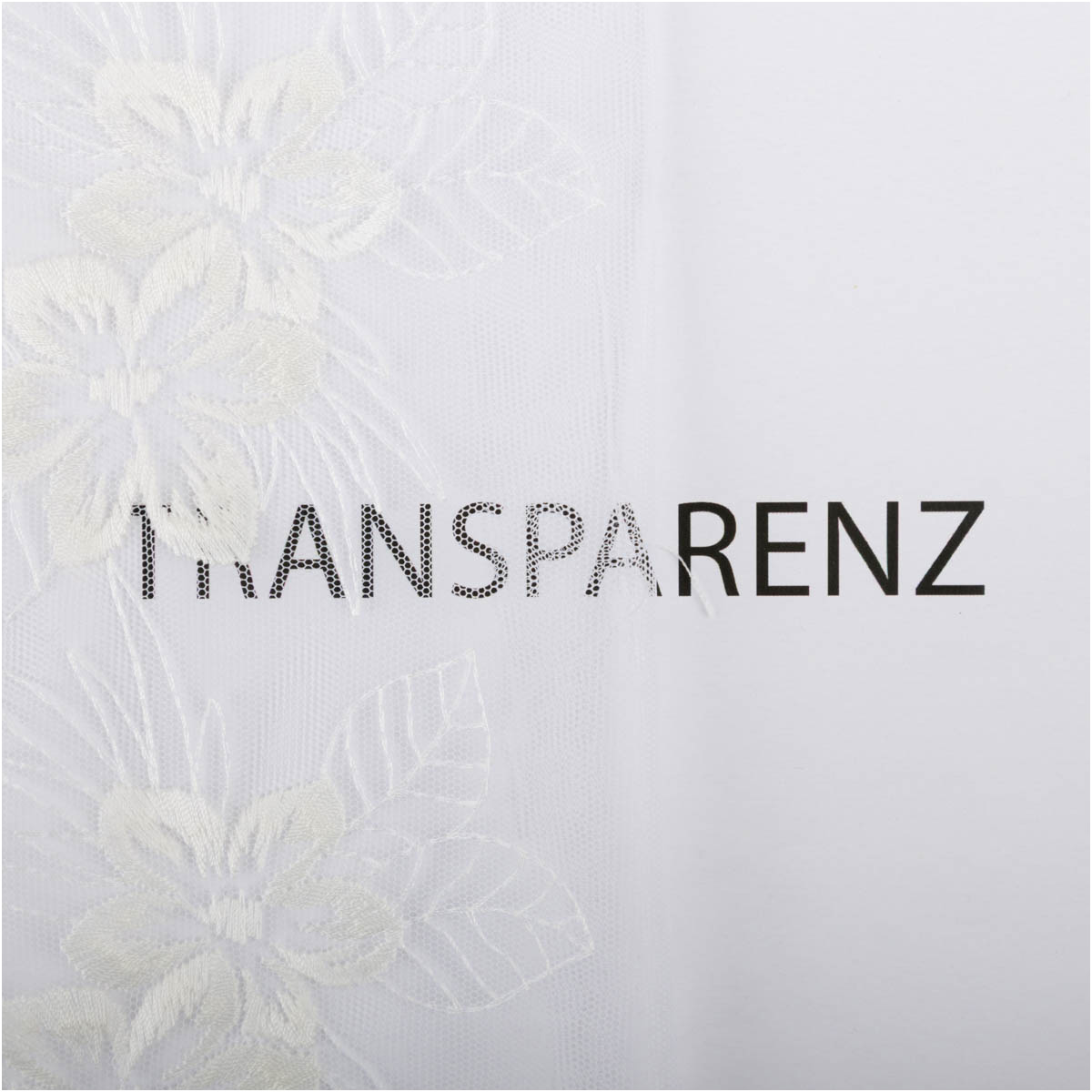 Tüllstoff mit Blumenstickerei wollweiß – transparent, 140 cm Breite