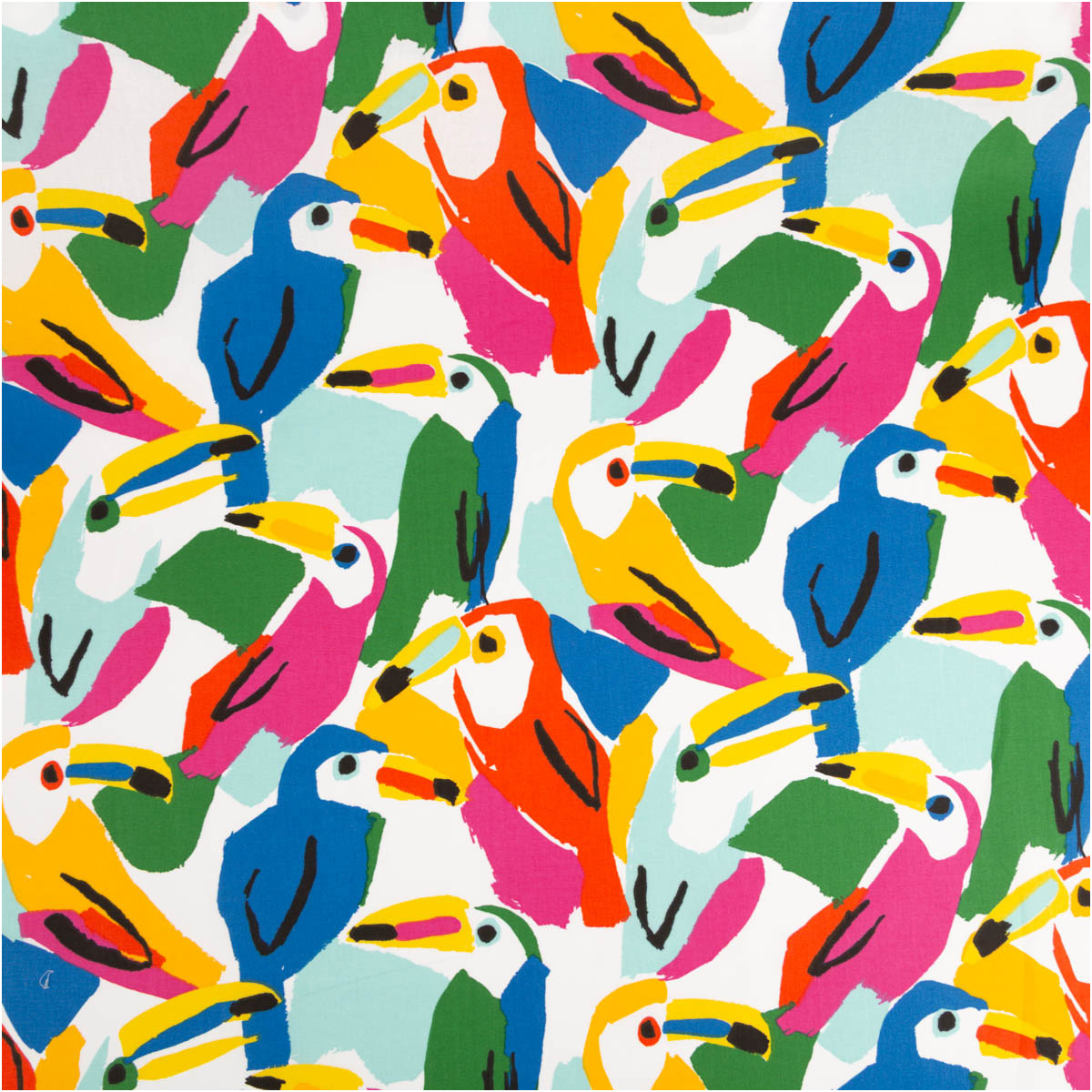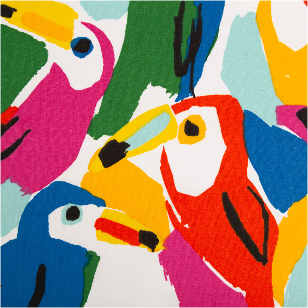 Der Dekostoff Costarica Papageien bringt mit seinem ausdrucksstarken französischen Dessin tropisches Flair in deine Nähprojekte. Die stilisiert gemalten Papageien in kräftigen Farben auf weißem Grund wirken modern, lebendig und künstlerisch. Durch die leichte Qualität mit ca. 125 g/qm fällt der Stoff schön weich und bleibt dabei formstabil.